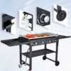 - Convenient Wheels & Handles: The four flexible wheels make it easy to move the grill around, while two of them can be locked in place. The griddle plate and grease catch pan are equipped with handles for easy removal.