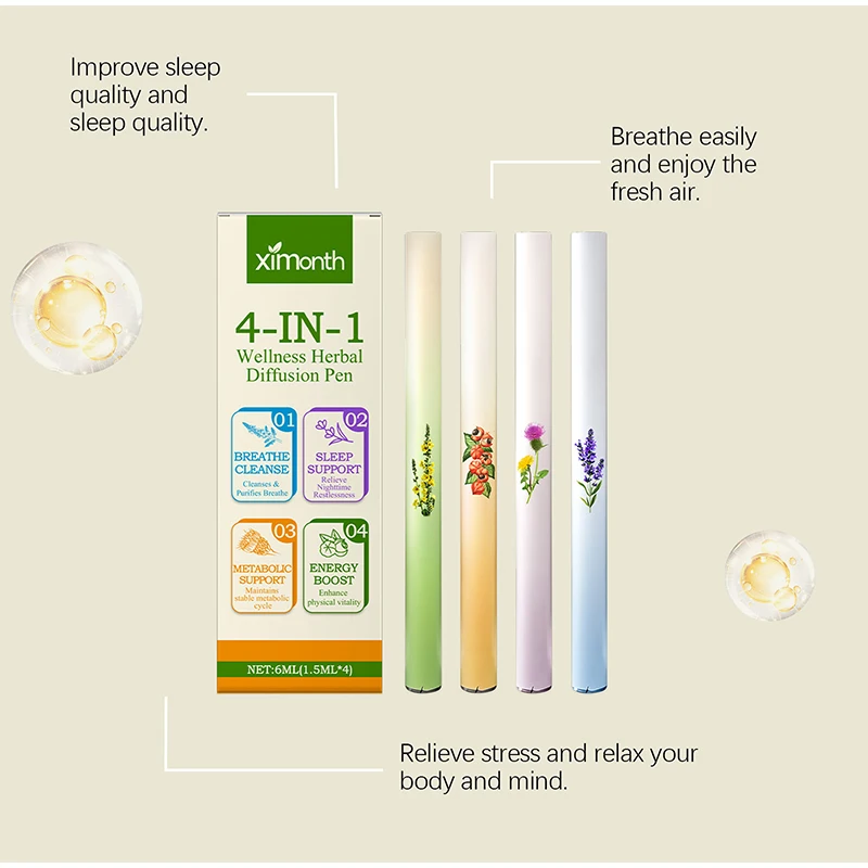 4-In-1 Herbal Diffusion Pen Set Boosts Energy Supports Sleep Cleanses Breath Enhances Metabolism Gentle Daily Wellness Support