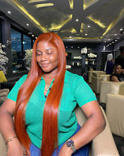 This hair color looked great, the shipment was quick, the customer service was very good and they kept in touch with me until the end of the shipment. I like this wig a lot, it's good quality, it barely comes off, it's the right length, it's very long and thick, it explains the density. Full, shiny, 100% human hair. I'll buy it again.