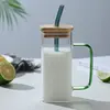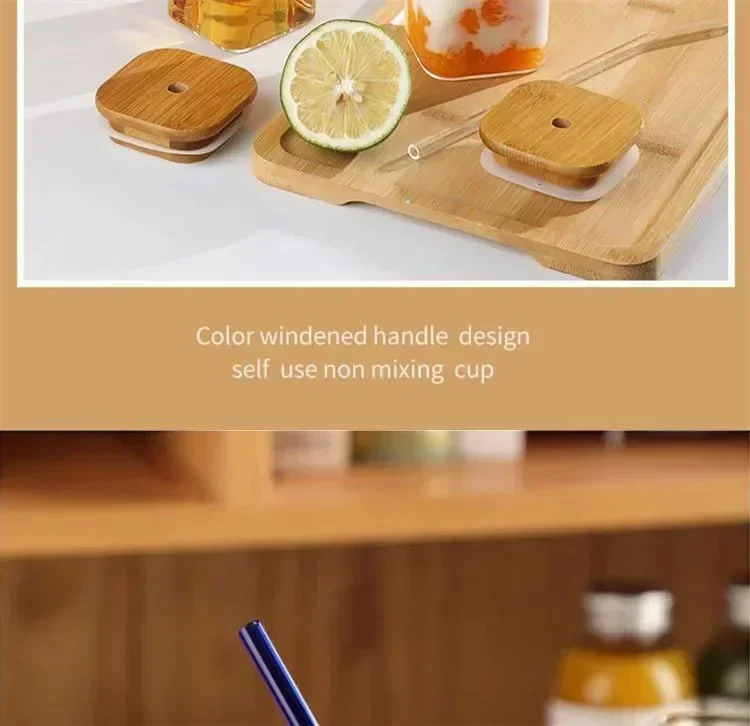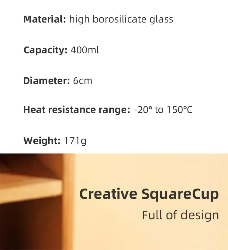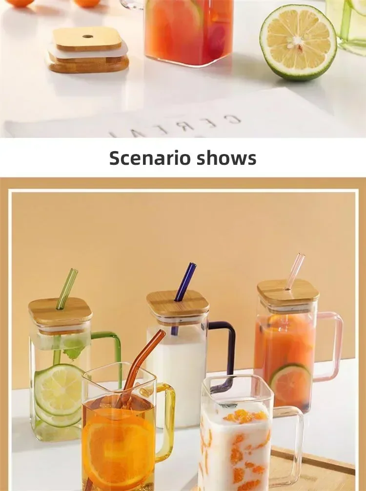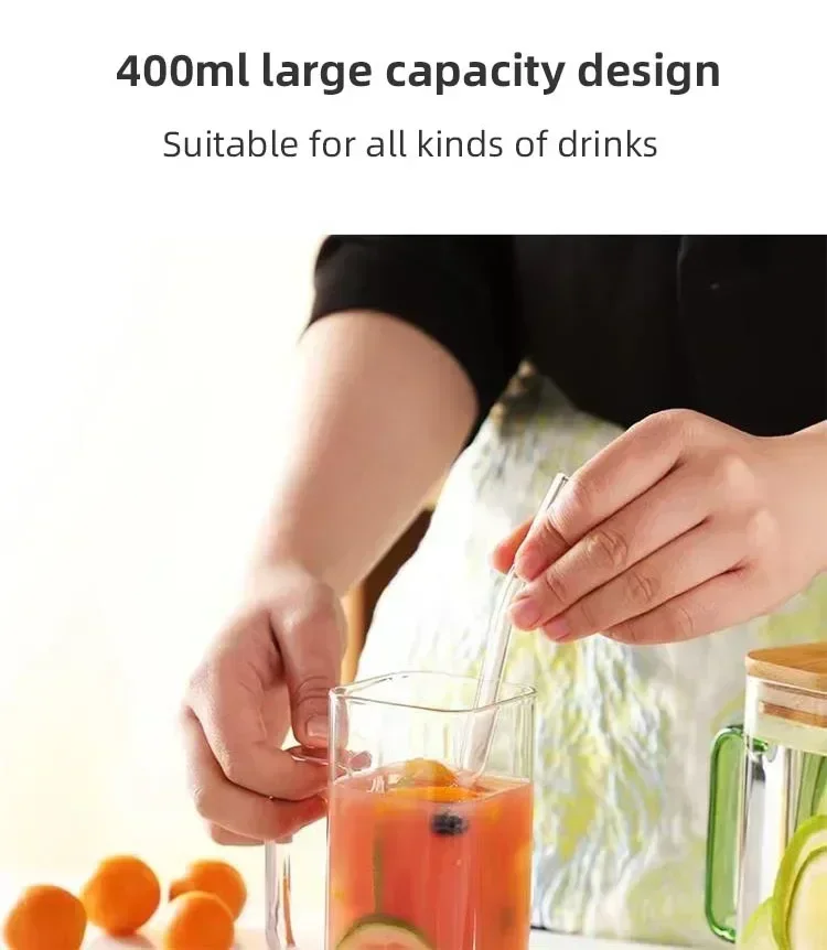 400ml Square Glass Mug With Lid and Straw Breakfast Milk Cup Microwave Safe Transparent Party Beer Coffee Mug Drinkware Glass