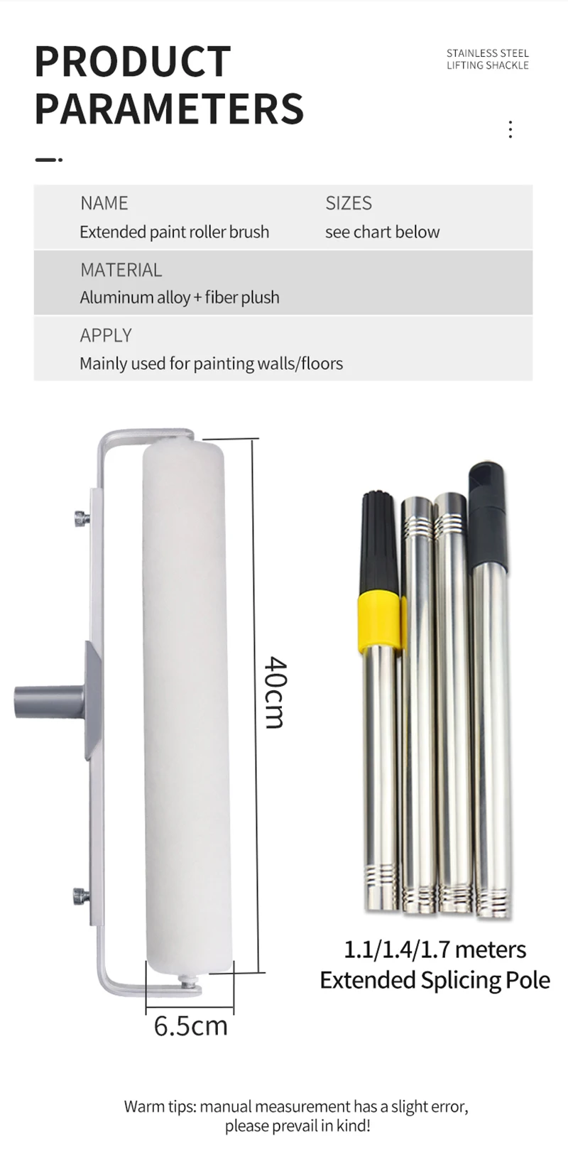 40CM Paint Roller Brush Long Plush Painting Handle Tool For Wall Decorative With 1.1M 1.4M 1.7M Extension Rod