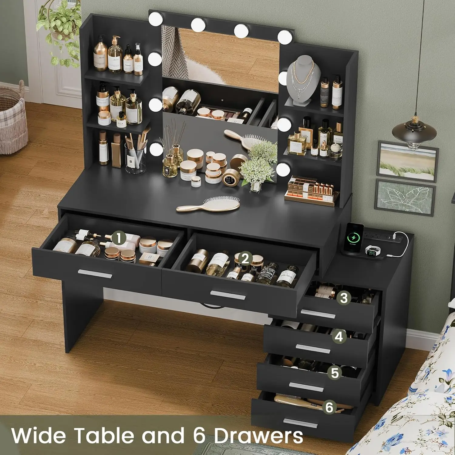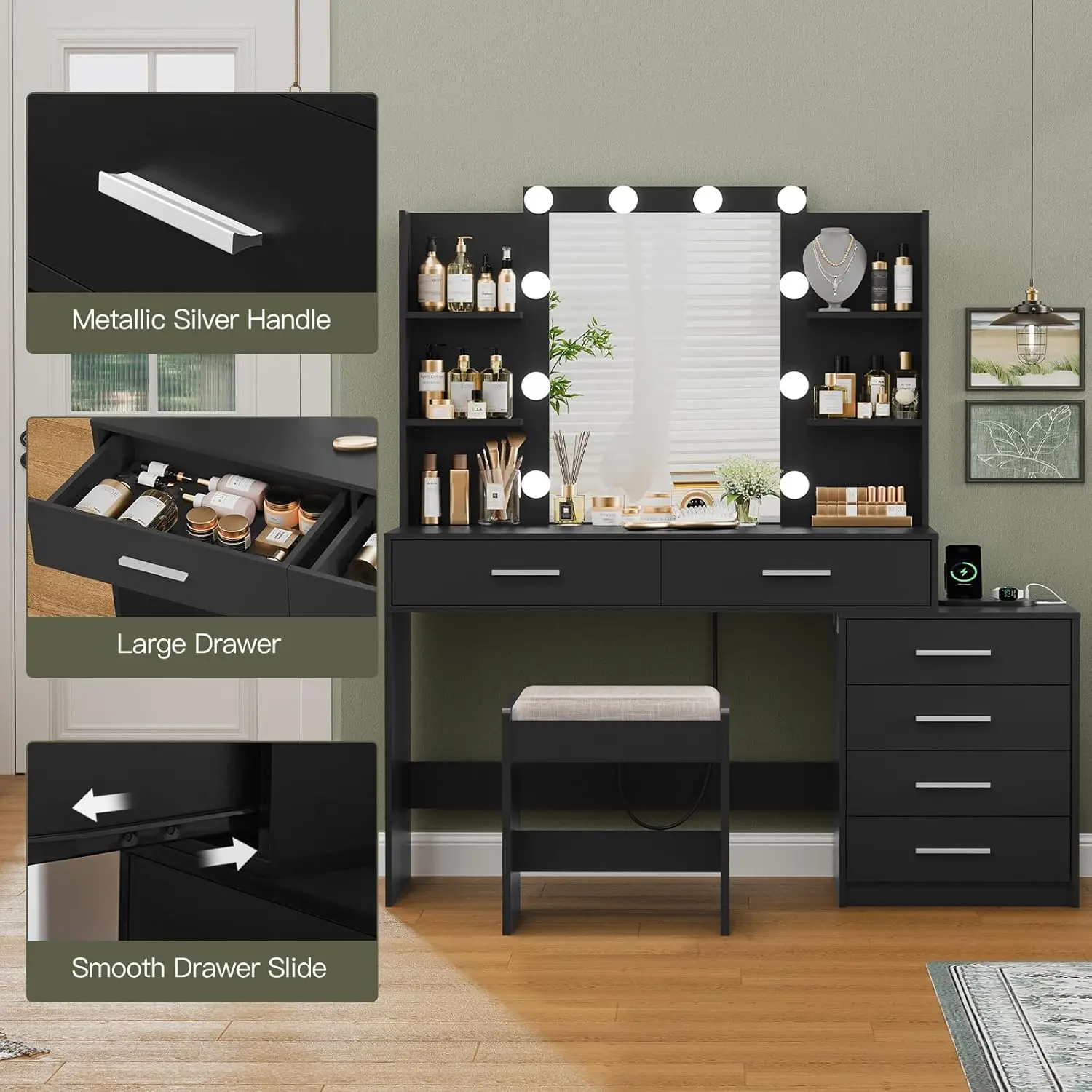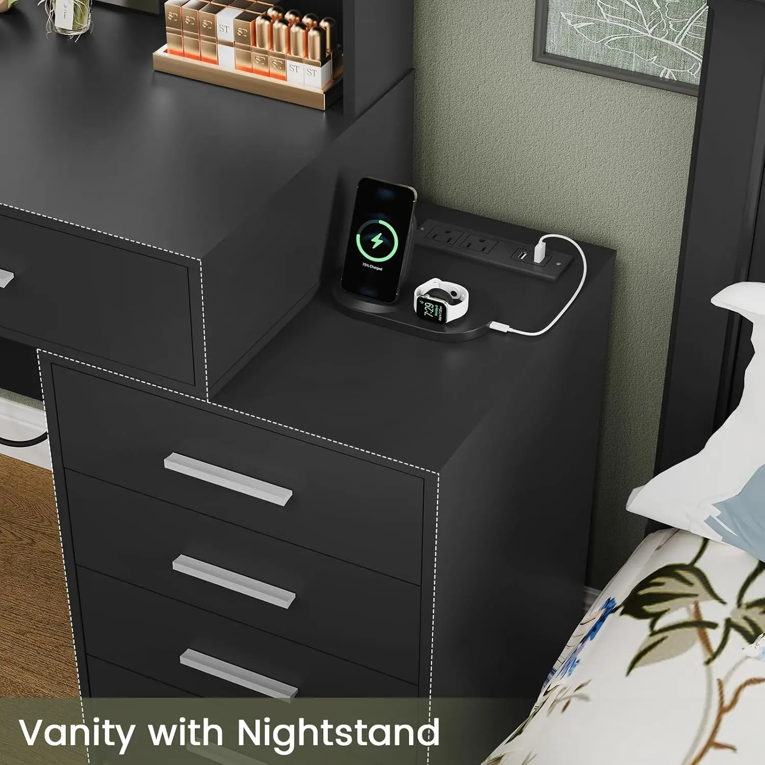 Vanity and Nightstand 2 in 1 Design: The lighted makeup vanity is designed with a bedside table on the right side, you can put the vanity desk next to the bed so that it can have two uses. It doesn’t take up too much bedroom space and give you more extra storage. What a great design,is the best gift on Valentine’s Day, Mother’s Day, Christmas, a girlfriend’s birthday, or a housewarming celebration
