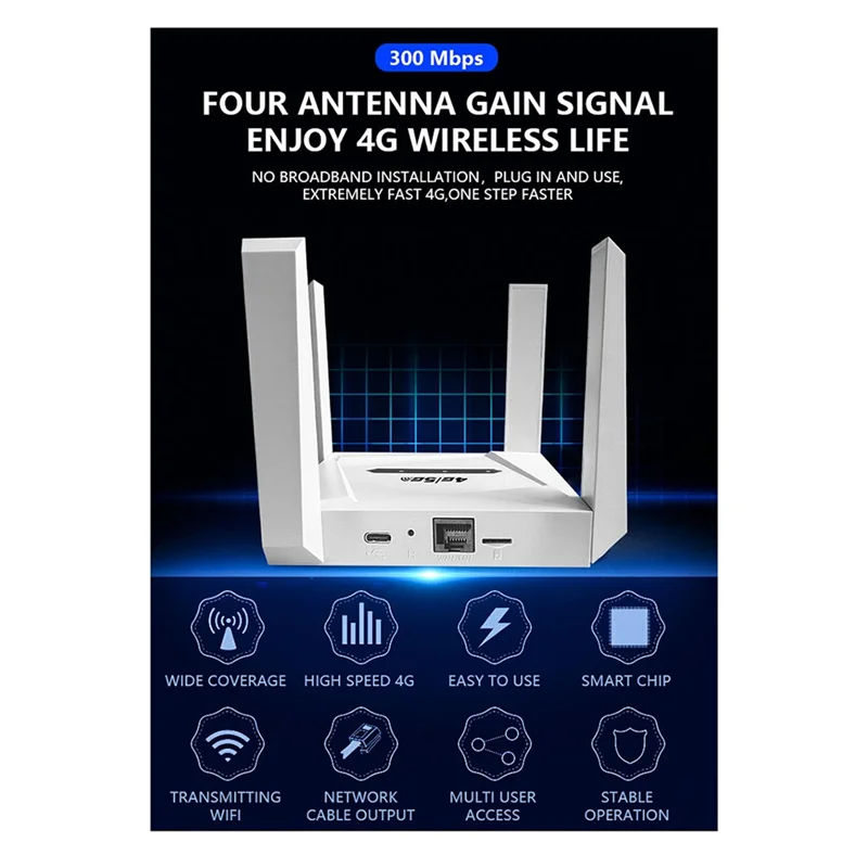 300 mbps four antenna gain signal enjoy 4g wireless life no broadband installation, plug in and use, extremely fast 4g, one step faster
