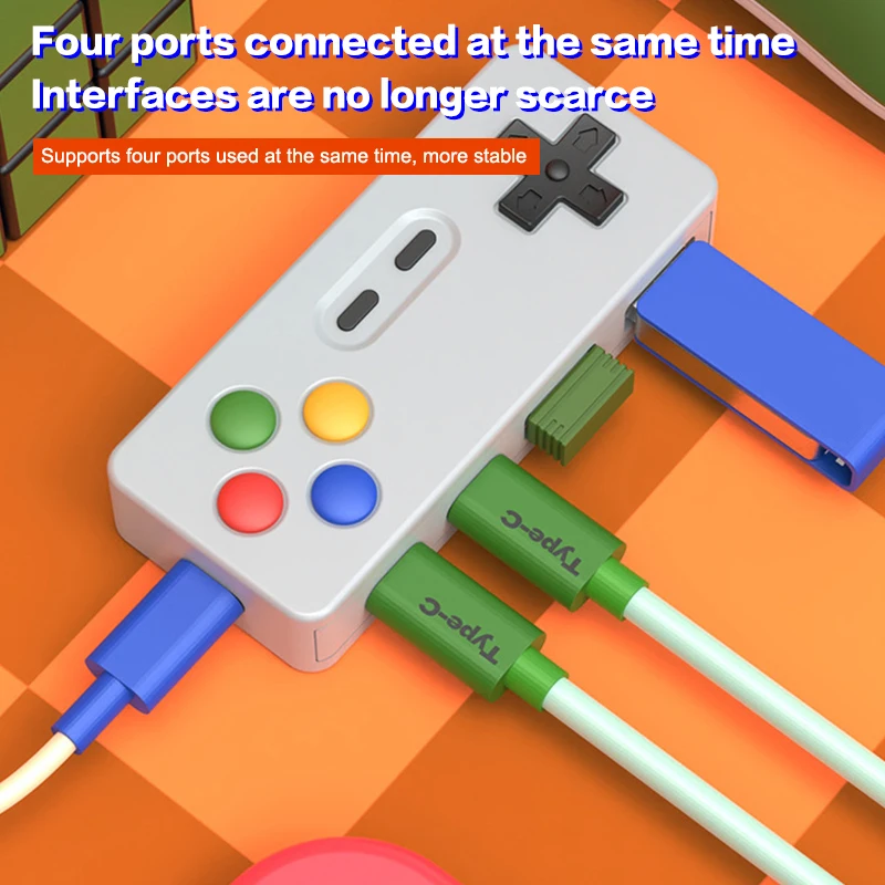 1. Four-in-one design: The HUB four-in-one converter has a multi-port design, which can be connected to multiple devices such as mouse, keyboard, and USB at the same time, which greatly improves work efficiency.