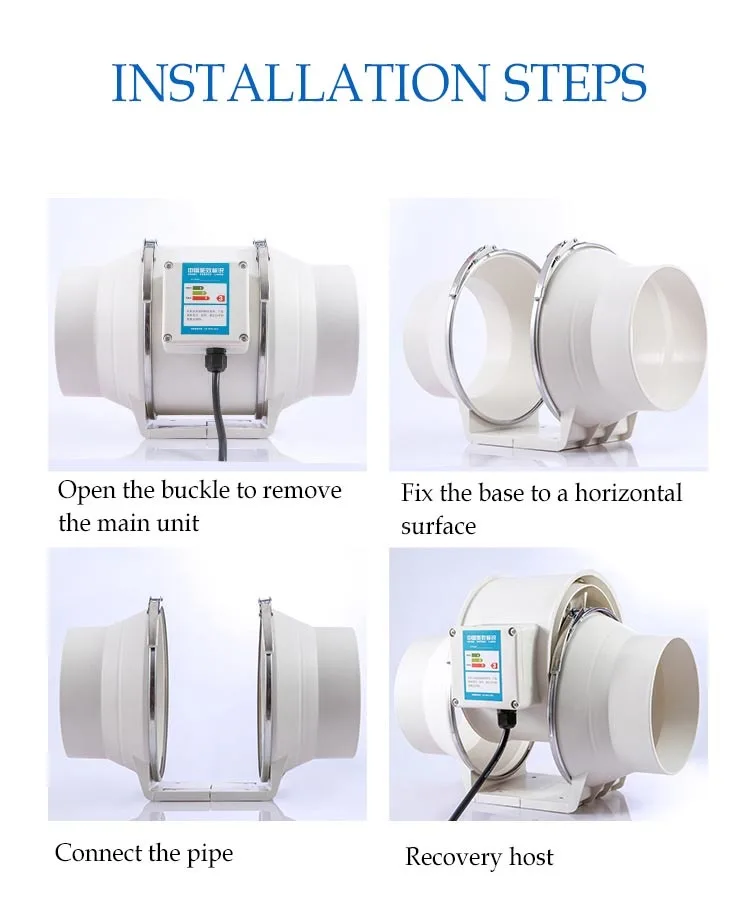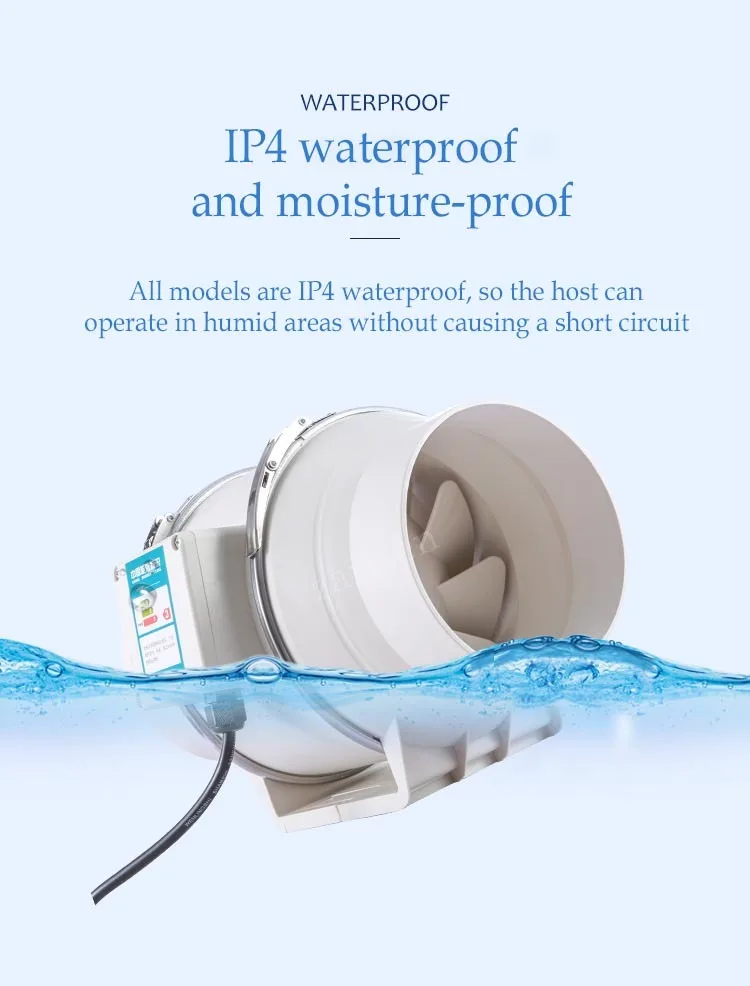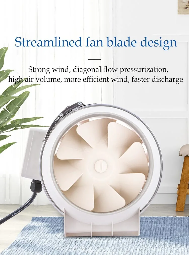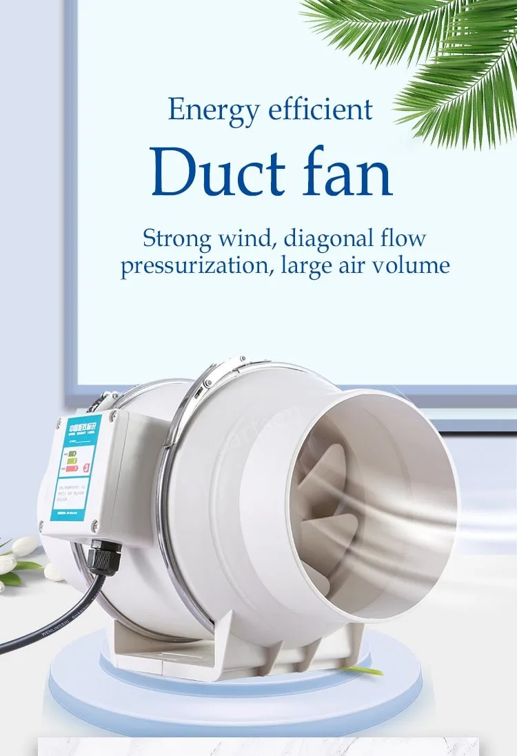 4inch 220V Silent Inline Duct Fan Hydroponic Exhaust Air Extractor Blower for Home Bathroom Vent Grow Powerful Ventilation