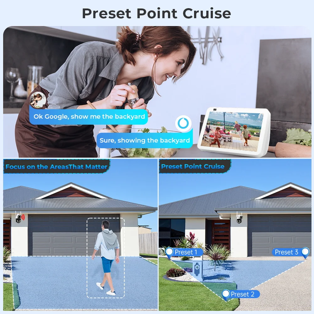 Support multiple preset cruise function,NVR with Onvif is Compatible with Our Dual Screens Camera