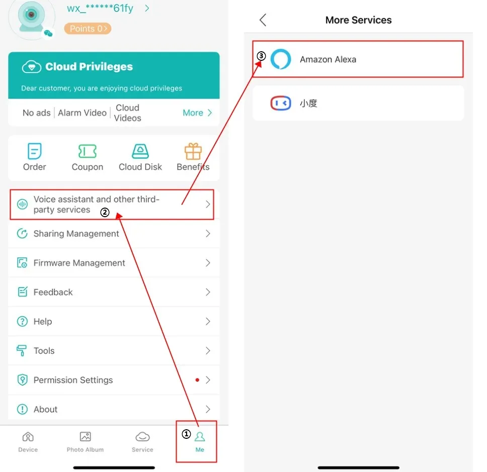 How to find the Alexa configuration portal in the icsee app