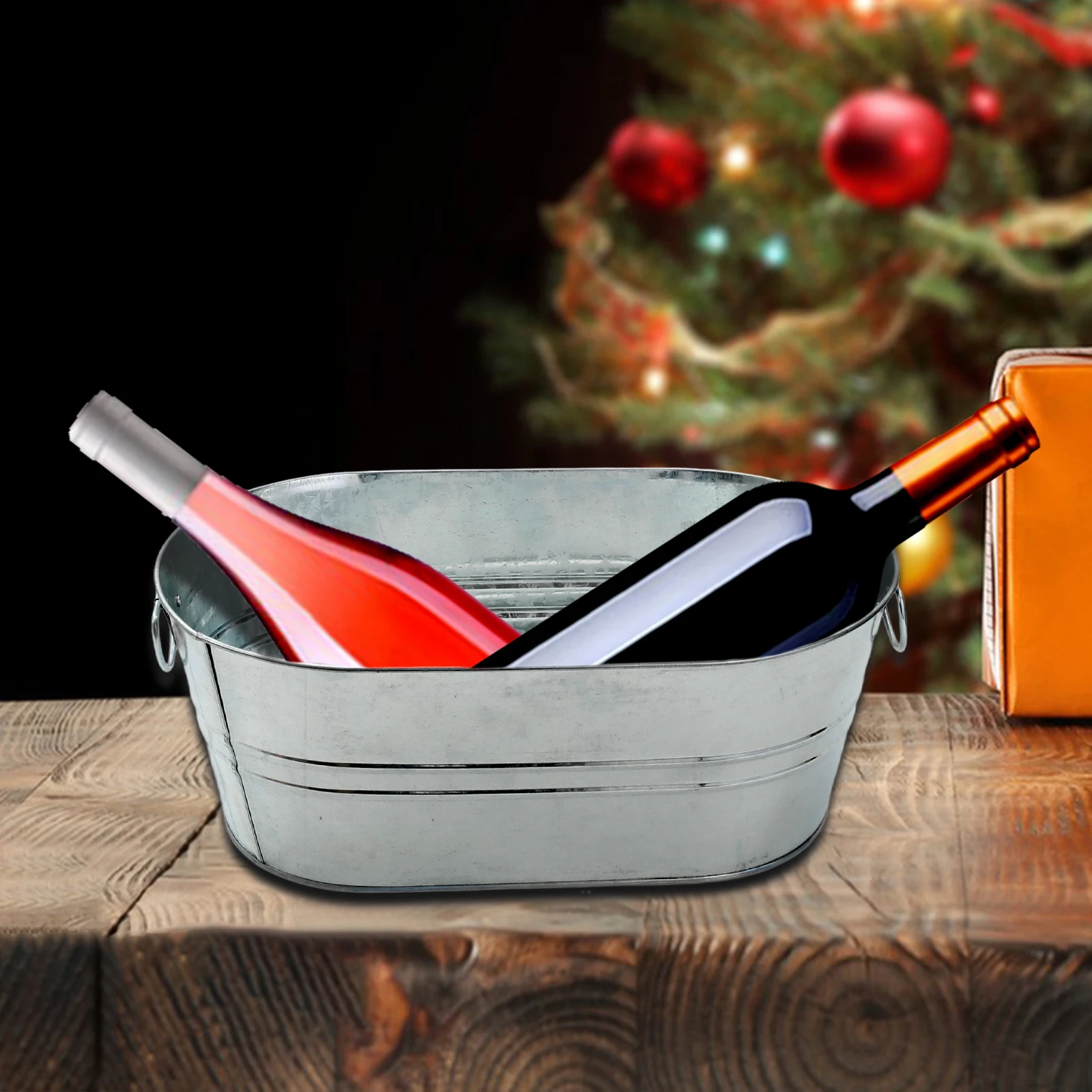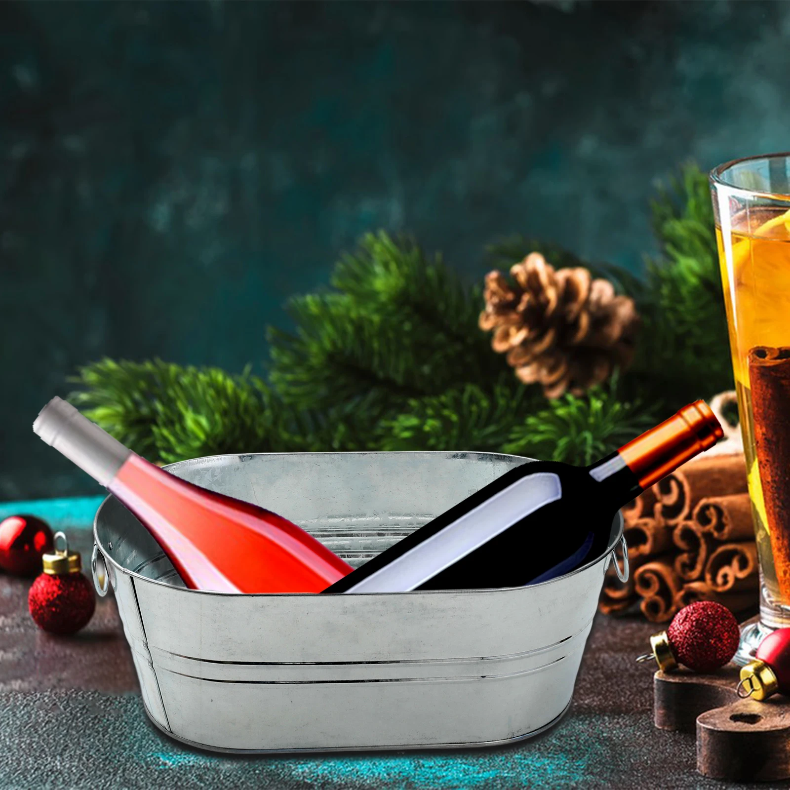 【Size】 : Galvanized oval beverage tub are 39cmx23cmx16cm/15.35inchx9.06inchx6.30inch, providing ample space to store your beverage and keep them chilled.