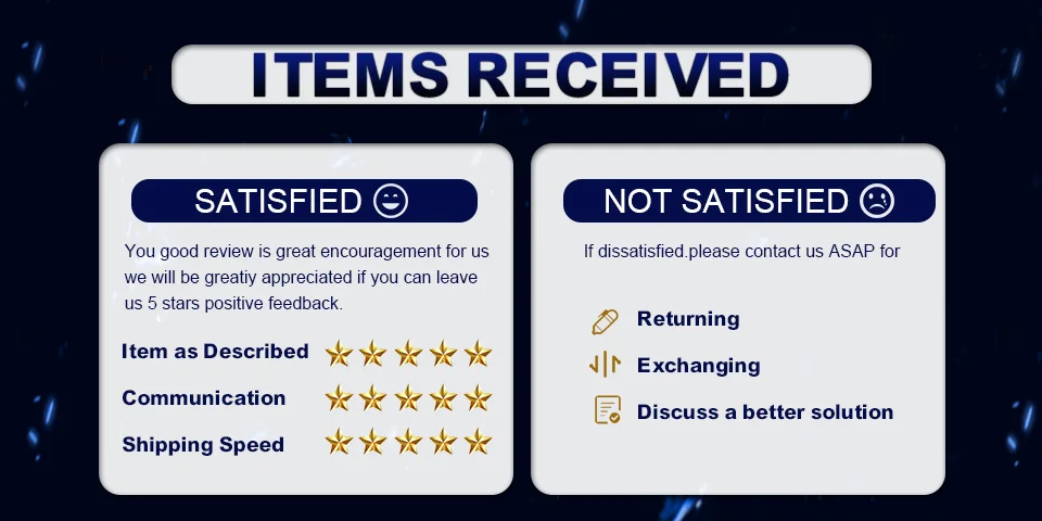 2.If there any quality problems ,please offer detailed information to us within 7 days after you receive the parcel,we will confirm the problem and then offer a satisfying soultion to you.