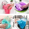 METERIAL: The hanging loop bathroom hand towel is made of thick coral fleece, not fade and not shed,tightly wired, comfortable, soft as a cloud, water-absorbing and quick-drying, and it is very suitable for household daily use.