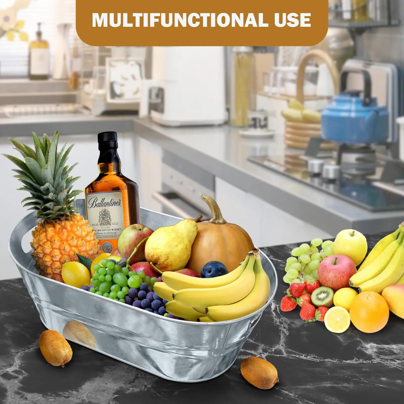 【Large Capacity】: The Galvanized Beverage Tub can hold a large number of bottles, jars and ice cubes, making it a practical choice for parties and events.