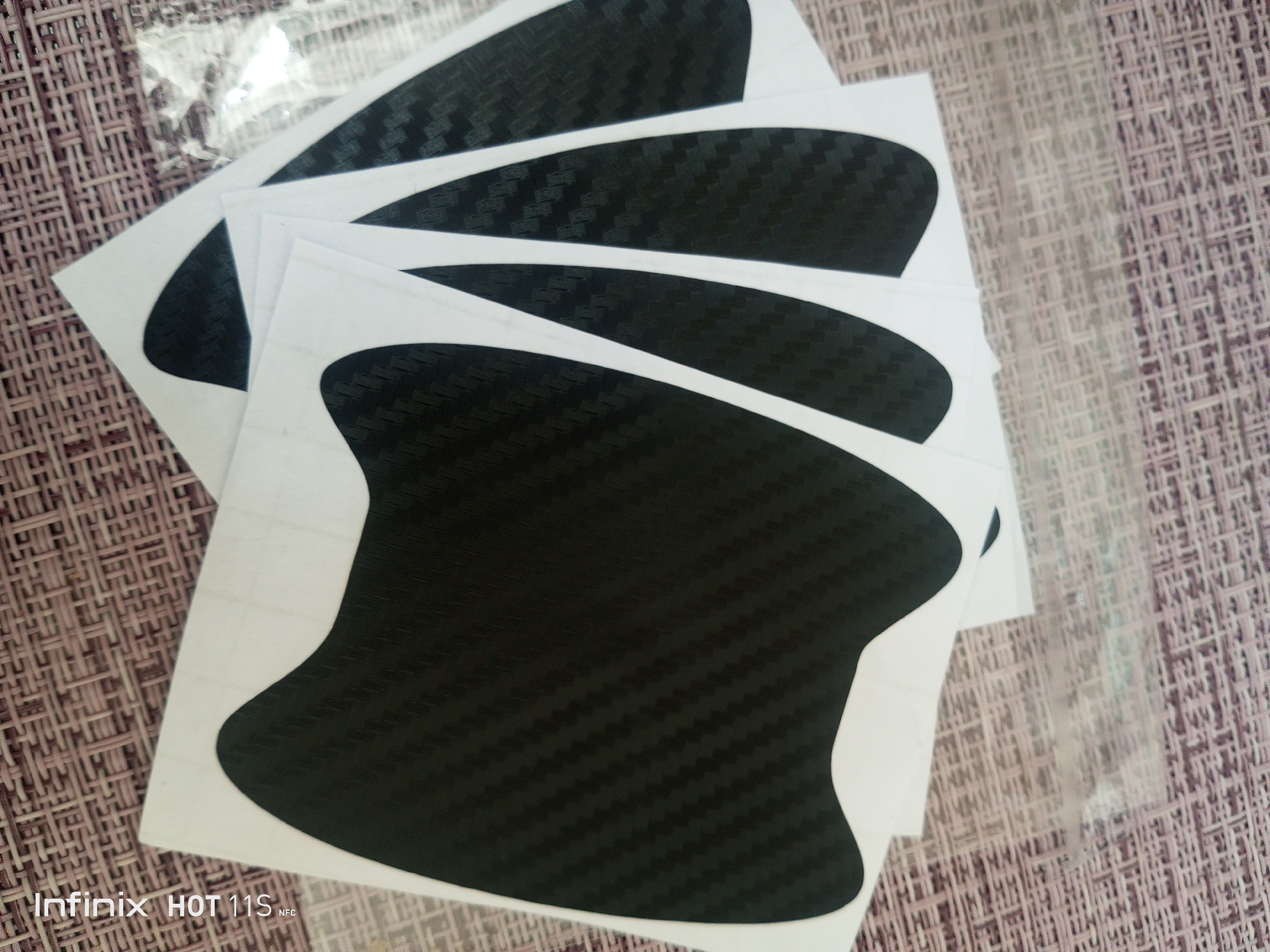 Stickers, small at my discretion, less than a depression under the handles. I have Kia Sportage 3. not yet glued. In appearance and to the touch dense. Shipment and delivery are fast, up to RB about 20-30 days.