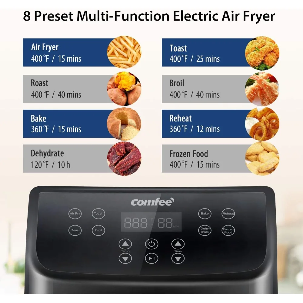 8-in-1 PRESET FUNCTIONS – 8 built-in smart programs, including air fry, toast, roast, broil, bake, dehydrate, reheat and frozen food with no hassle. It’s easy to use and helps save time.