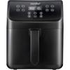 DETACHABLE BASKET – Our large air fryer is BPA & PFOA Free. It has a detachable nonstick coated basket that is easy to clean. The 5.8 Quart square basket fits a 5-6 pounds whole chicken and serves a family of 3-5 people.