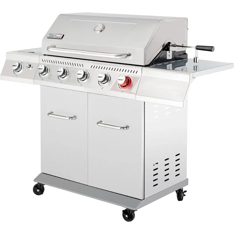 5-Burner Propane Gas Grill with Side Burner, Stainless Steel Barbeque Grills, Silver, GA5404S