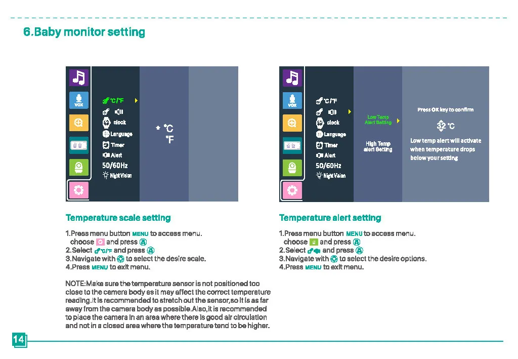 The camera is equipped with a high-precision temperature sensor, which can effectively sense the surrounding temperature. You can clearly see the temperature of the baby’s surroundings, making it more comfortable for the baby