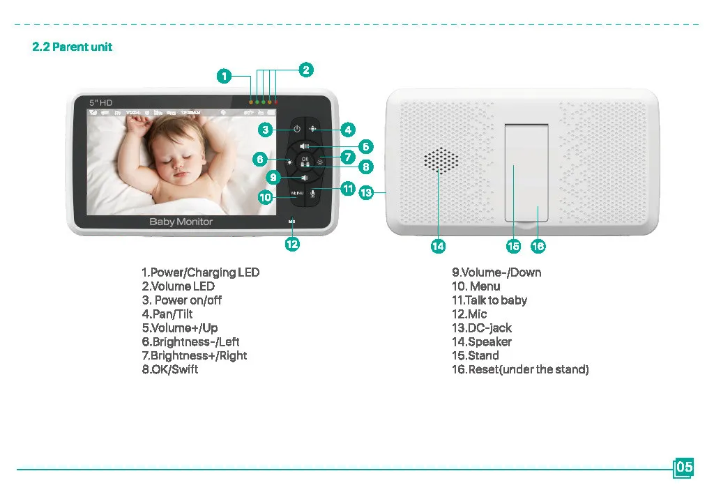 The monitor can open the automatic night vision function at night to protect your baby 24 hours