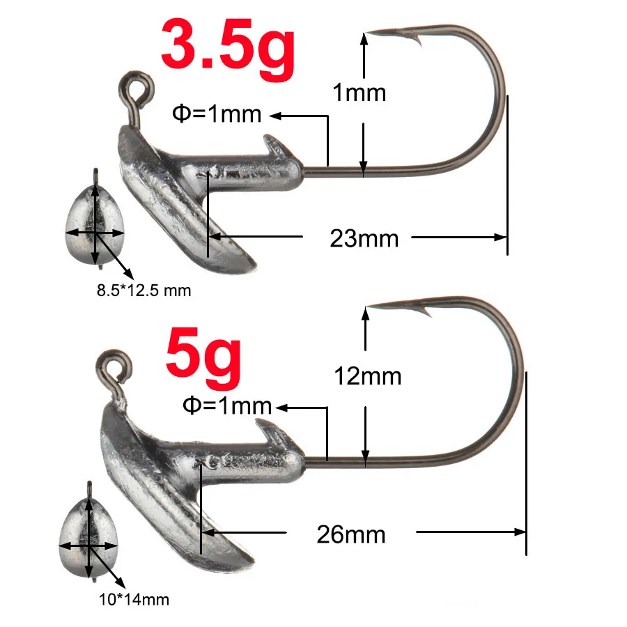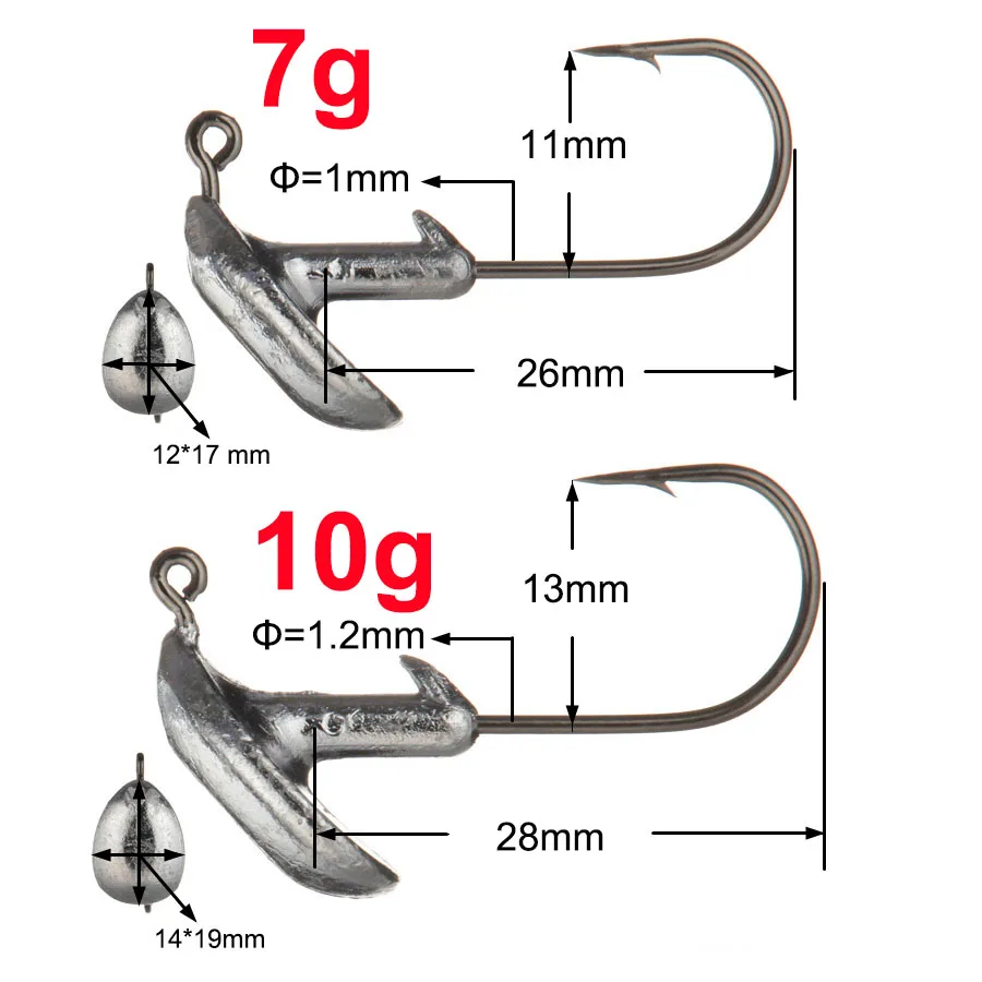 5 pcs 3.5g 5g 7g 10g 14g Tumbler Lead Head Hook Jig Bait Fishing Hook For Soft Lure Fishing Tackle fishing tackle accessorie