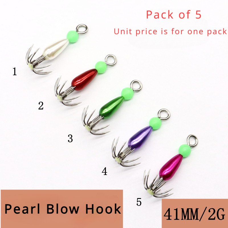 5 Pcs Tube Hooks Night Colour Light Blow Squid Small Hooks Drift Hooks Squid Hooks Pearlescent Ultraviolet Rocket Squid Hooks
