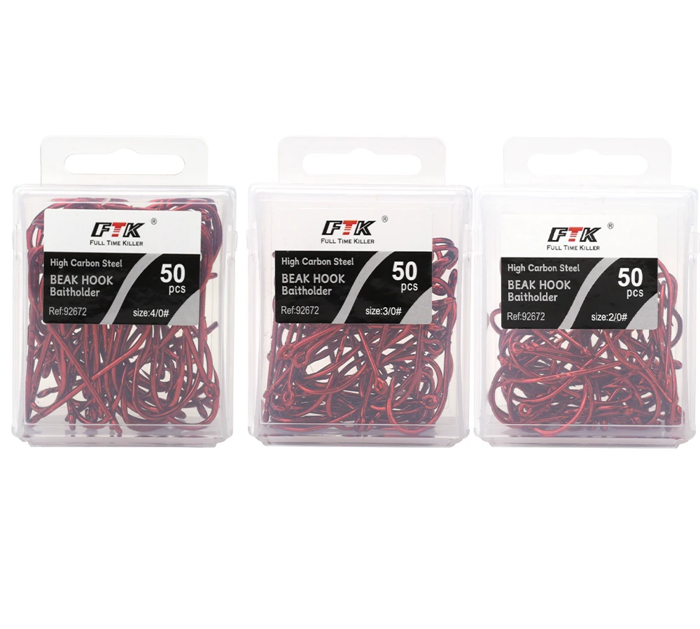 50-100pcs High Carbon Steel Baitholder Fishing Hooks Red 4/0#-10# Beak Barbed Long Shank Jig Worm Hooks Accessories