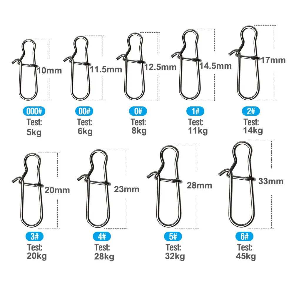 50 or 100 pcs Stainless Steel Fishing Snap Hooked Snap Pin Fastlock Clip Accessories Tackle for Barrel Swivel Lure hook