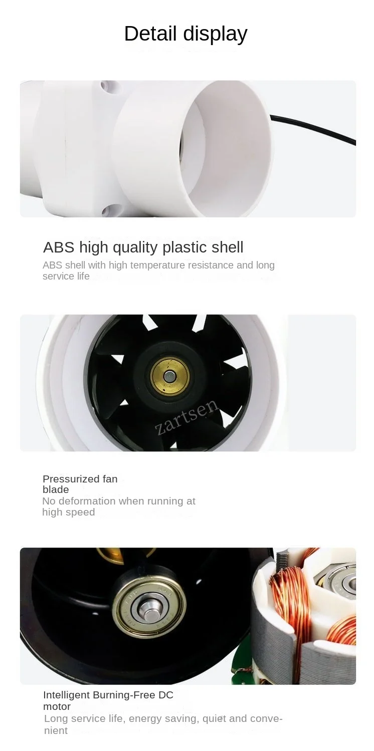 Quiet and Energy Exhaust Blower: This embedded fan to run more quietly and reach low speeds without generating noise or heat. Widely used in homes, offices, warehouses, restaurants, bars, shops, shopping malls, grow tents, greenhouses and other places where a lot of air is needed.