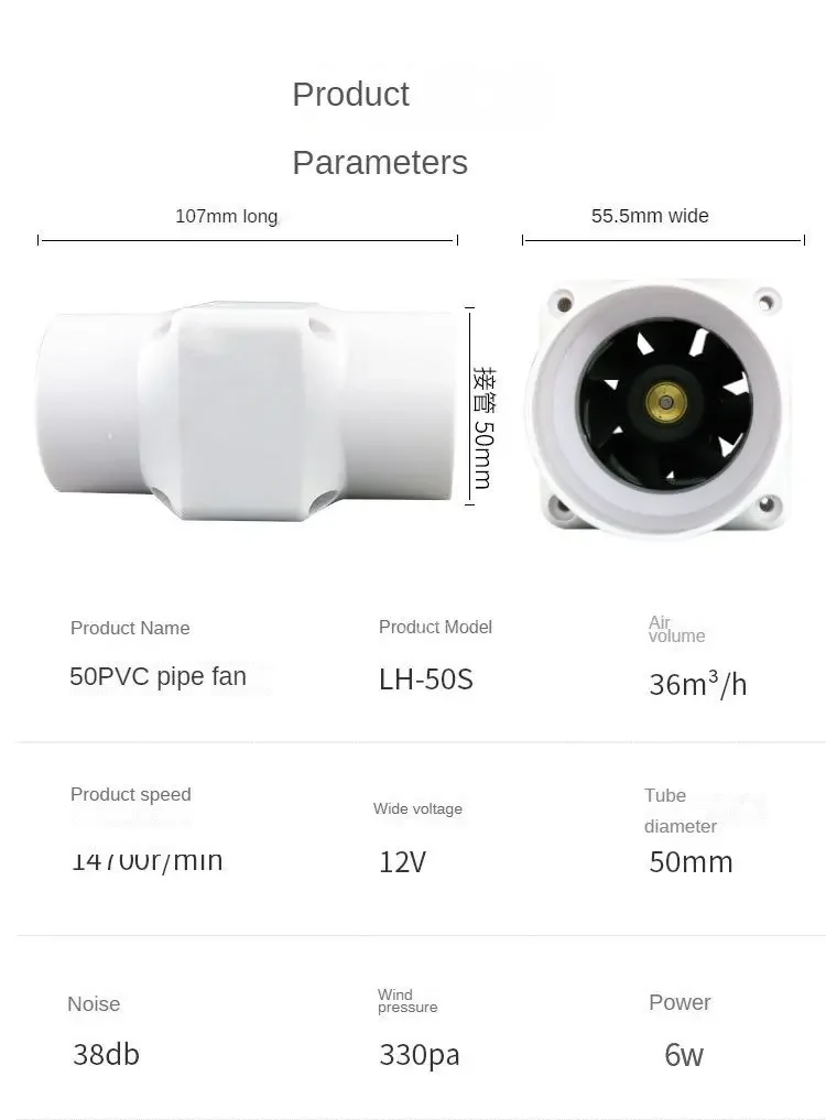 50mm 2inch Pipe Exhaust Fan for greenhouses, pet houses, tree houses and more.