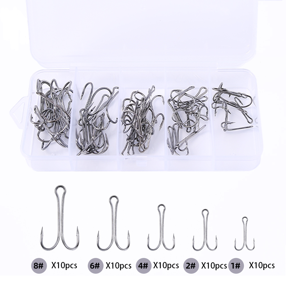 50pcs boxed two anchor hooks carbon steel Lua sea fishing two hooks barbed chicken claw hook double head hooks anti-bottom