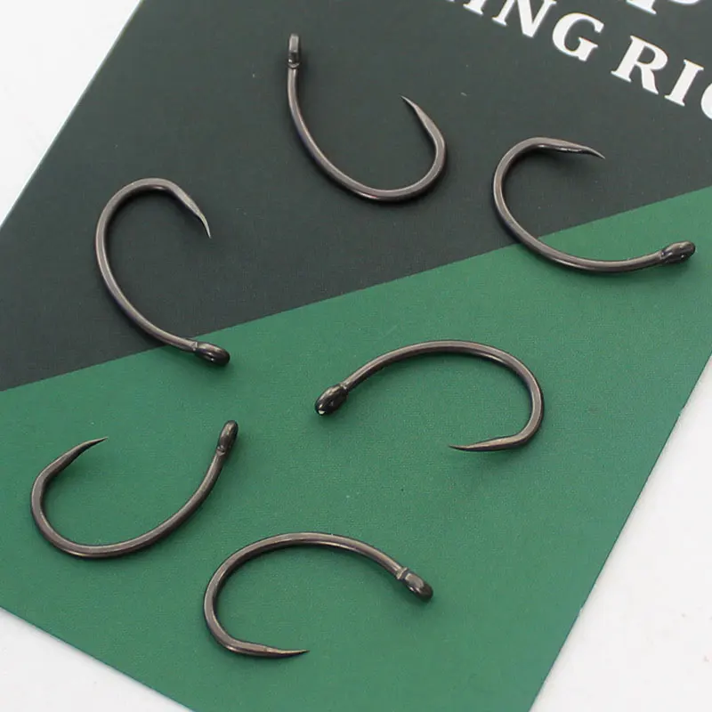 50PCS PTFE Coated High Carbon Stainless Steel Barbed hooks Carp Fishing Hooks Curved Wide Gape Micro Barbed Barbless Carp Hook