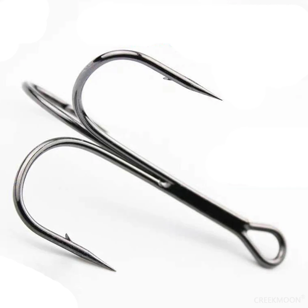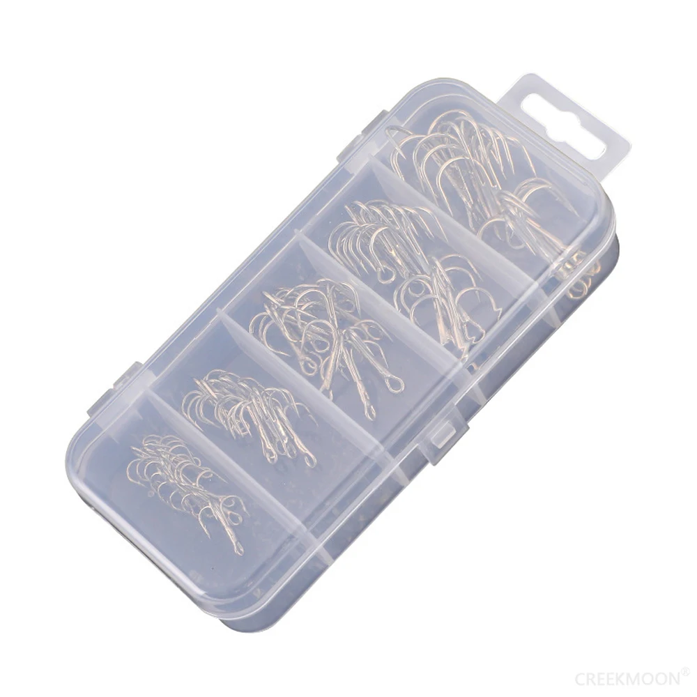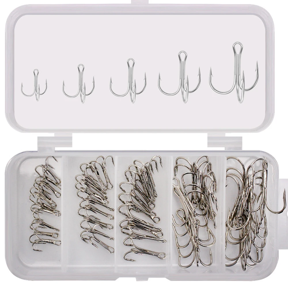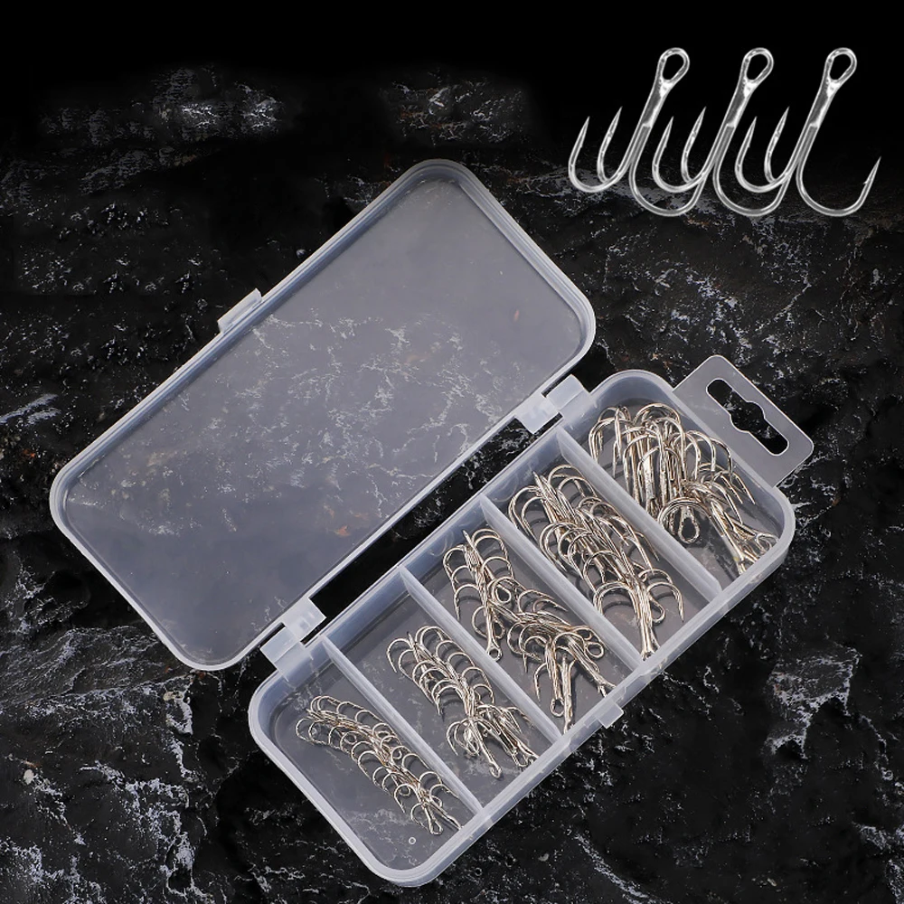 50pcs Super Sharp Fishing Treble Hooks In Box Sharpened Anchor Hooks Sizes 14-2# High Carbon Steel Barbed Fishhook Silver/Black