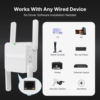 3.【High Performance】: Support wifi signal extending through the wall; the extending distance can be up to 100ft,no more dead zones in your smart home life(speaker / monitoring / TV / doorbell / thermostat).2 External antennas for better performance, reliable wireless N network speed up to 300Mbps covering your bedroom, floors, restroom, garage and garden.