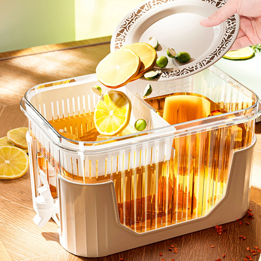 4.5L Fridge Beverage Dispenser Large Capacity Portable Juice Jug Cold Kettle with Faucet Detachable Base Water Dispenser Jug for Parties and Daily Use