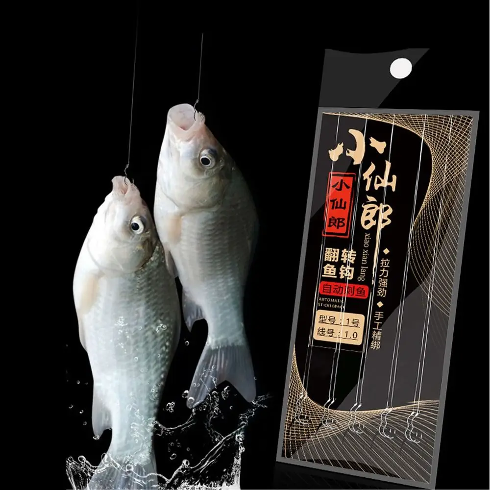Fish have the habit of repeatedly swallowing and spitting out fishhooks to test the danger, and the present invention is developed for fishes who like to spit out hooks. Double-width rounded corners, flat hook entrance, the hook automatically flips when the fish closes and opens the mouth, so that the hook tip can penetrate the fish mouth, thus realizing automatic fish stabbing