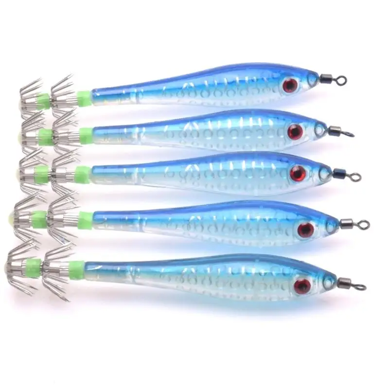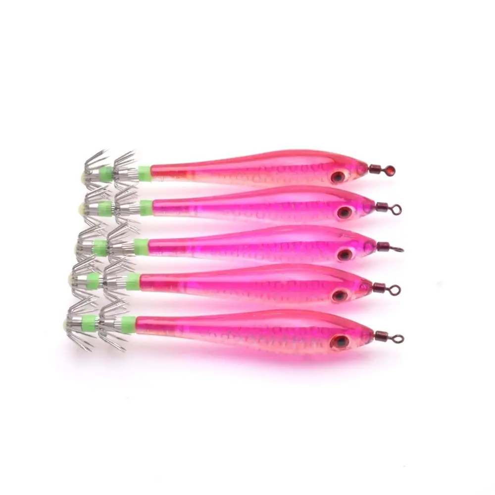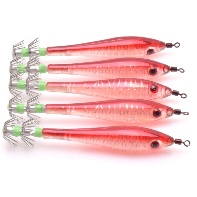 5Pc/bag New Imported All Night Squid Hook Rocket Squid Double Umbrella Hook No. 4 Roll Wood Shrimp Blow Tube Fishing Accessories