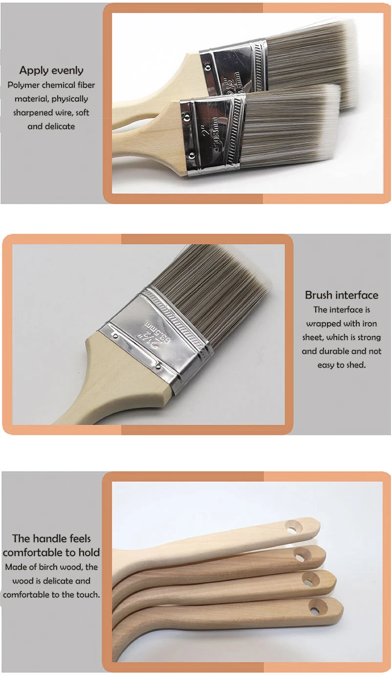 • Mango de madera :El mango de madera proporciona un agarre cómodo y seguro, facilitando la aplicación de pintura.