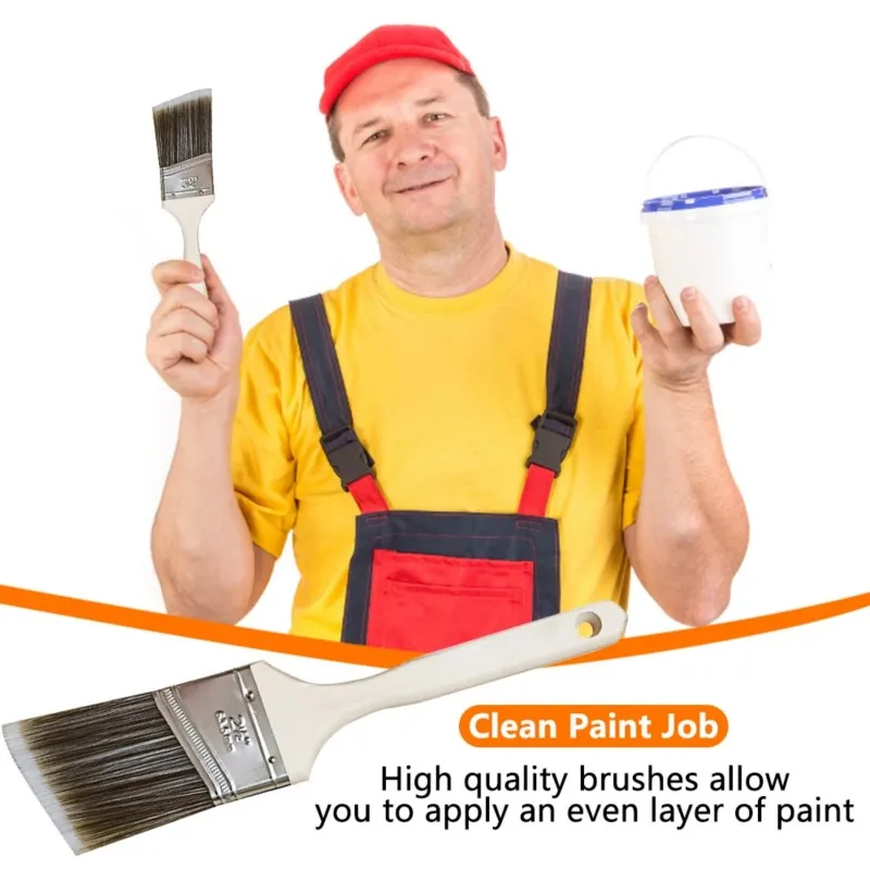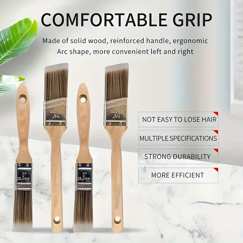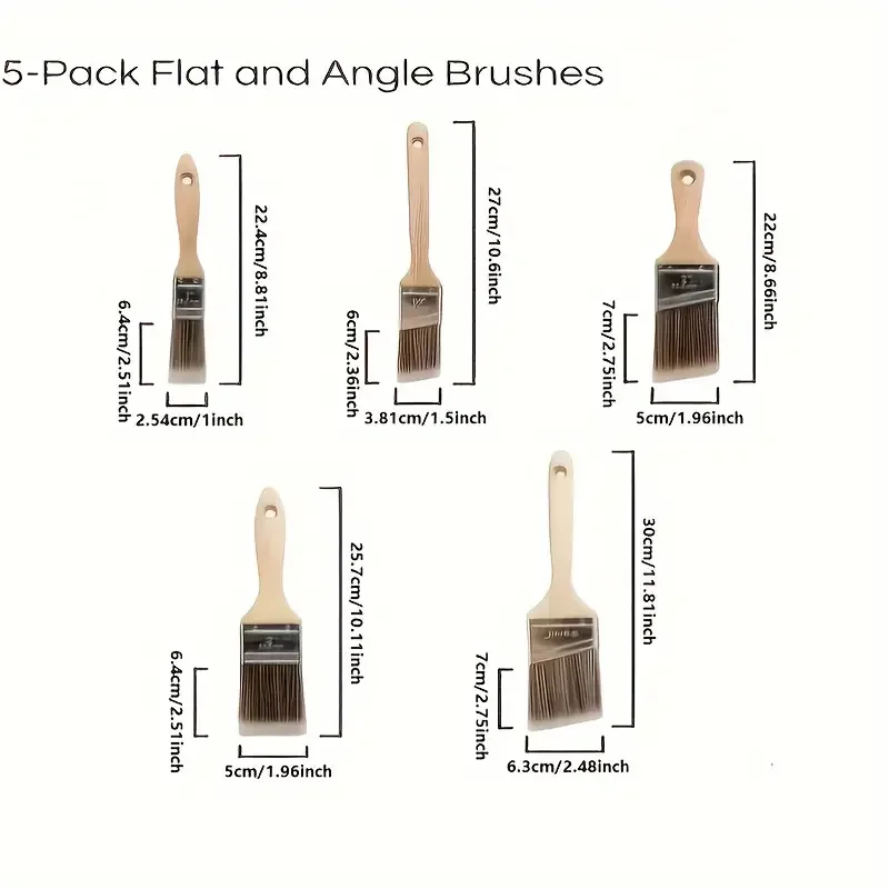 5pcs Professional Wood Paint Brush Set Wooden Painting Flat Angled Brush DIY Decorative Tool For Wall Furniture Painting