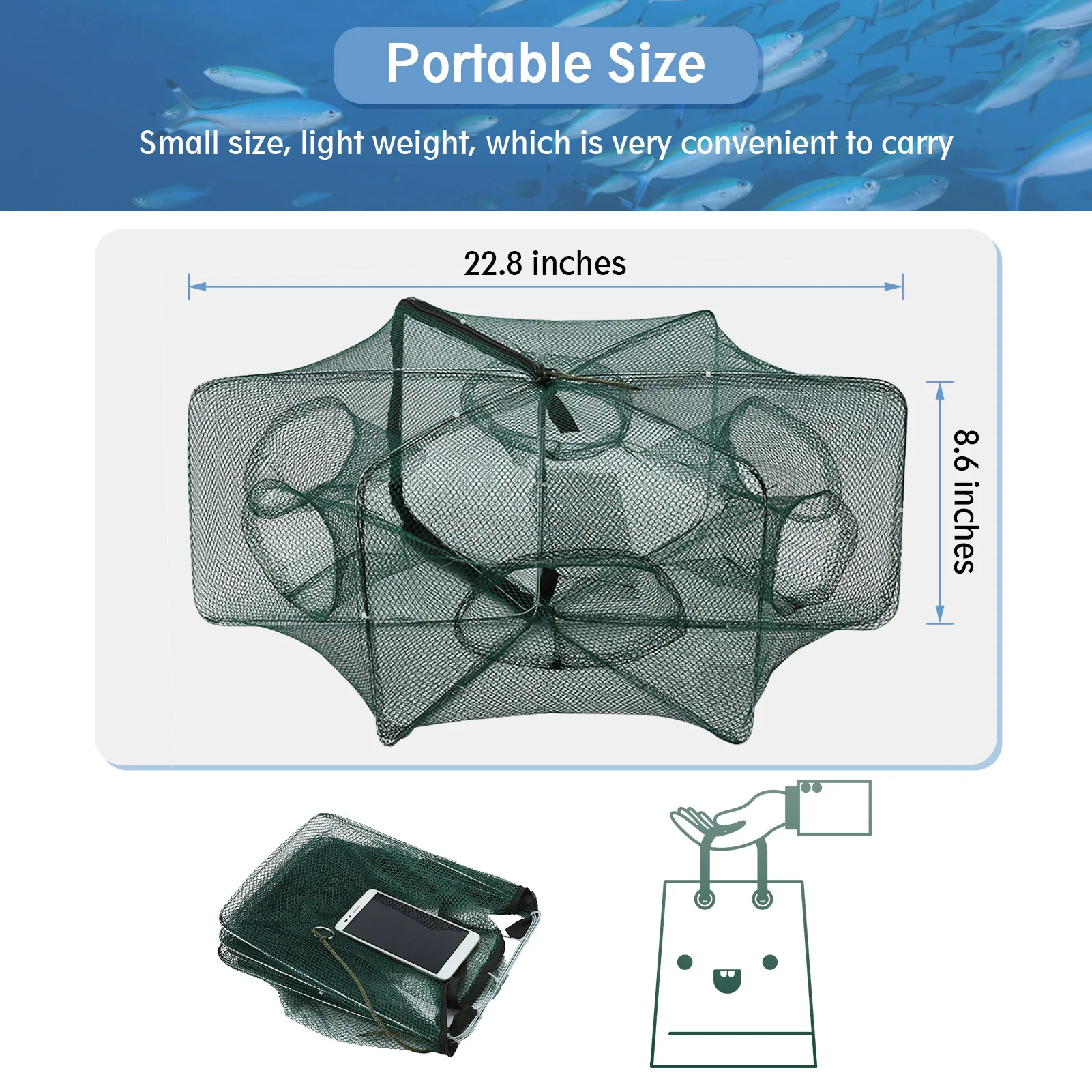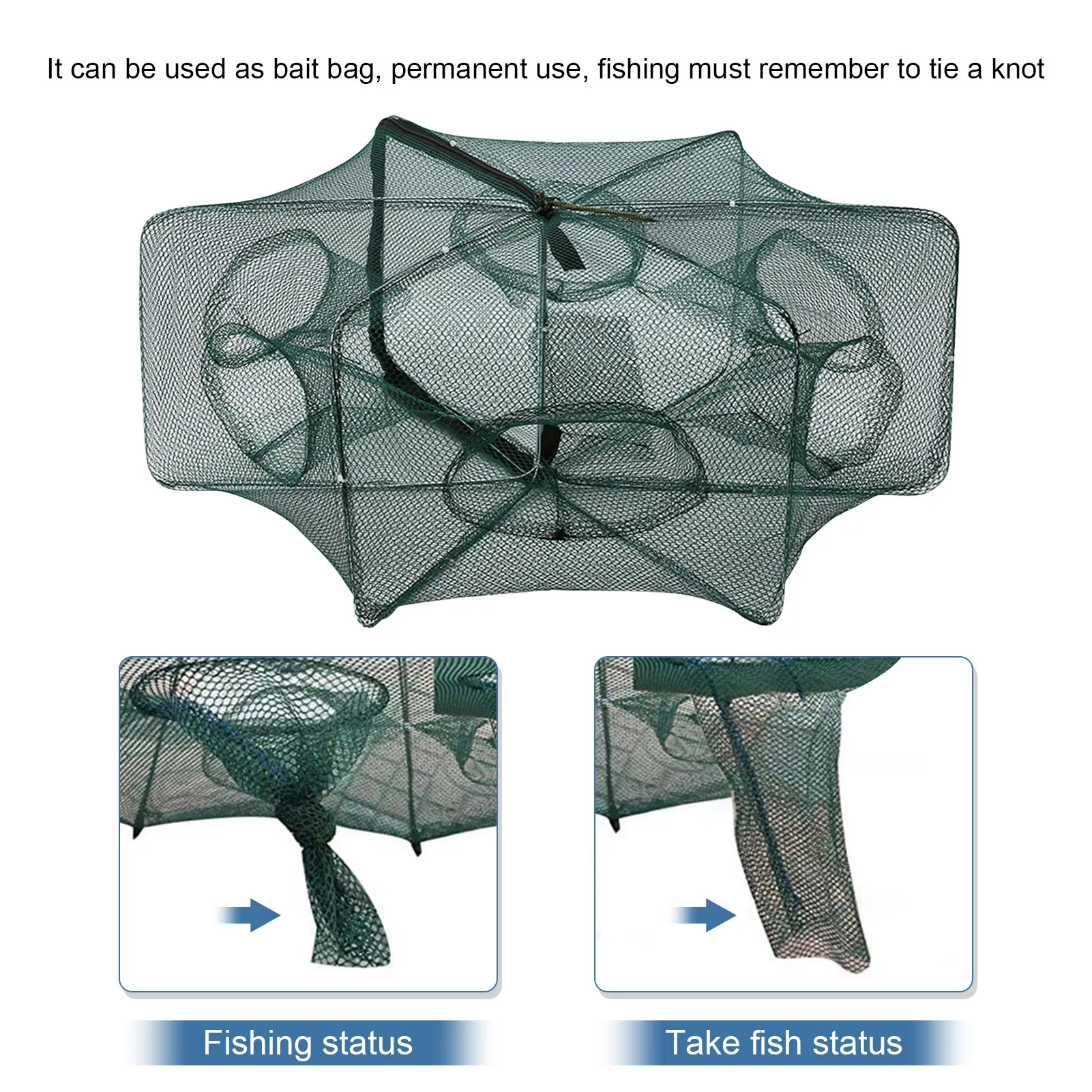 Fishing Net Trap with six enter design are great for catching smelt, eels, crab, lobster, minnows, shrimp and crawfish.