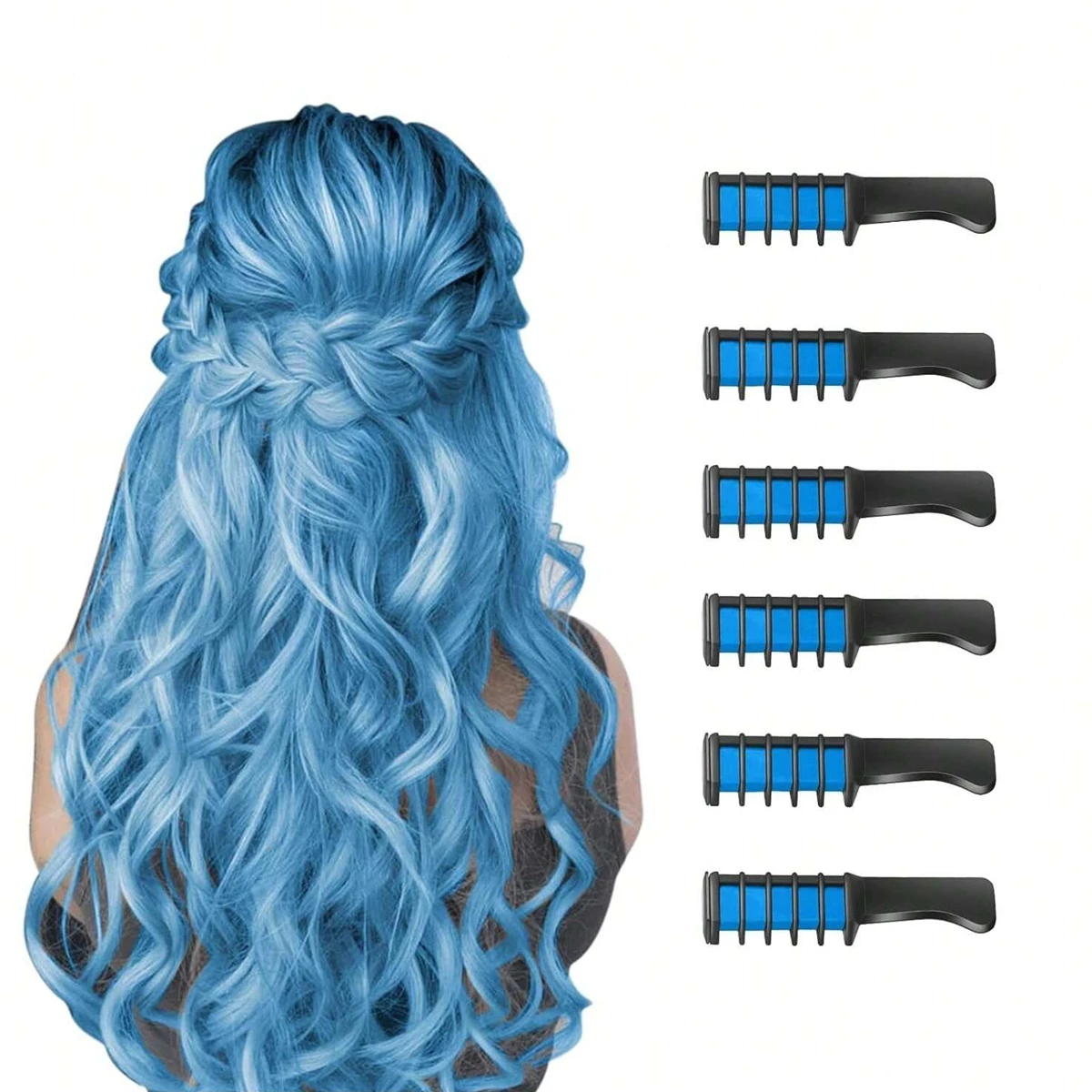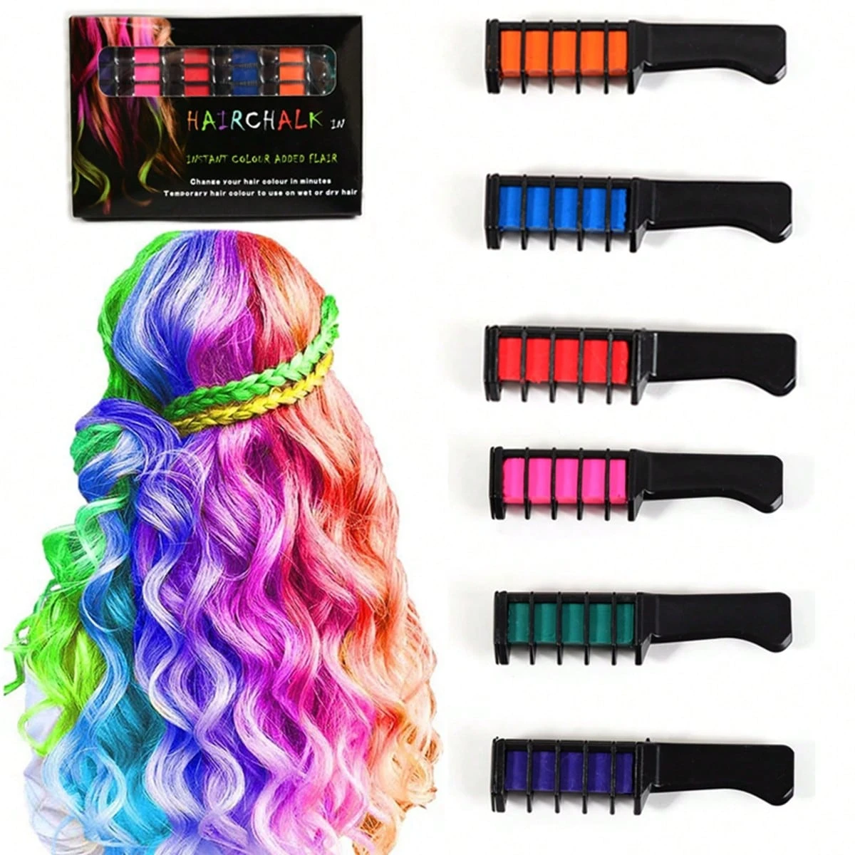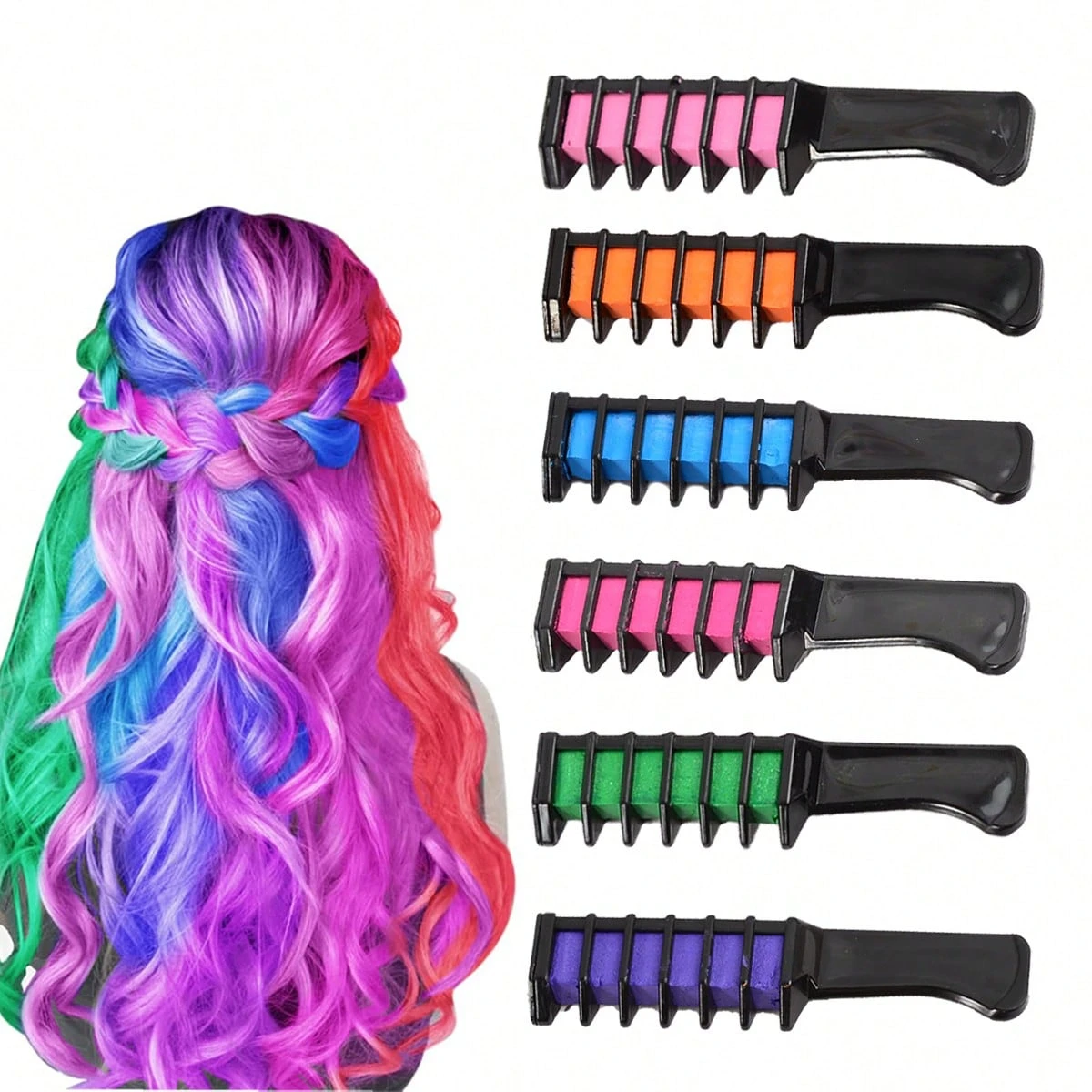 6-Piece Temporary Hair Dye Set, New Chalk Comb Temporary Washable Hair Dye, Suitable for Girls’ Birthday Role-Playing DIY