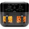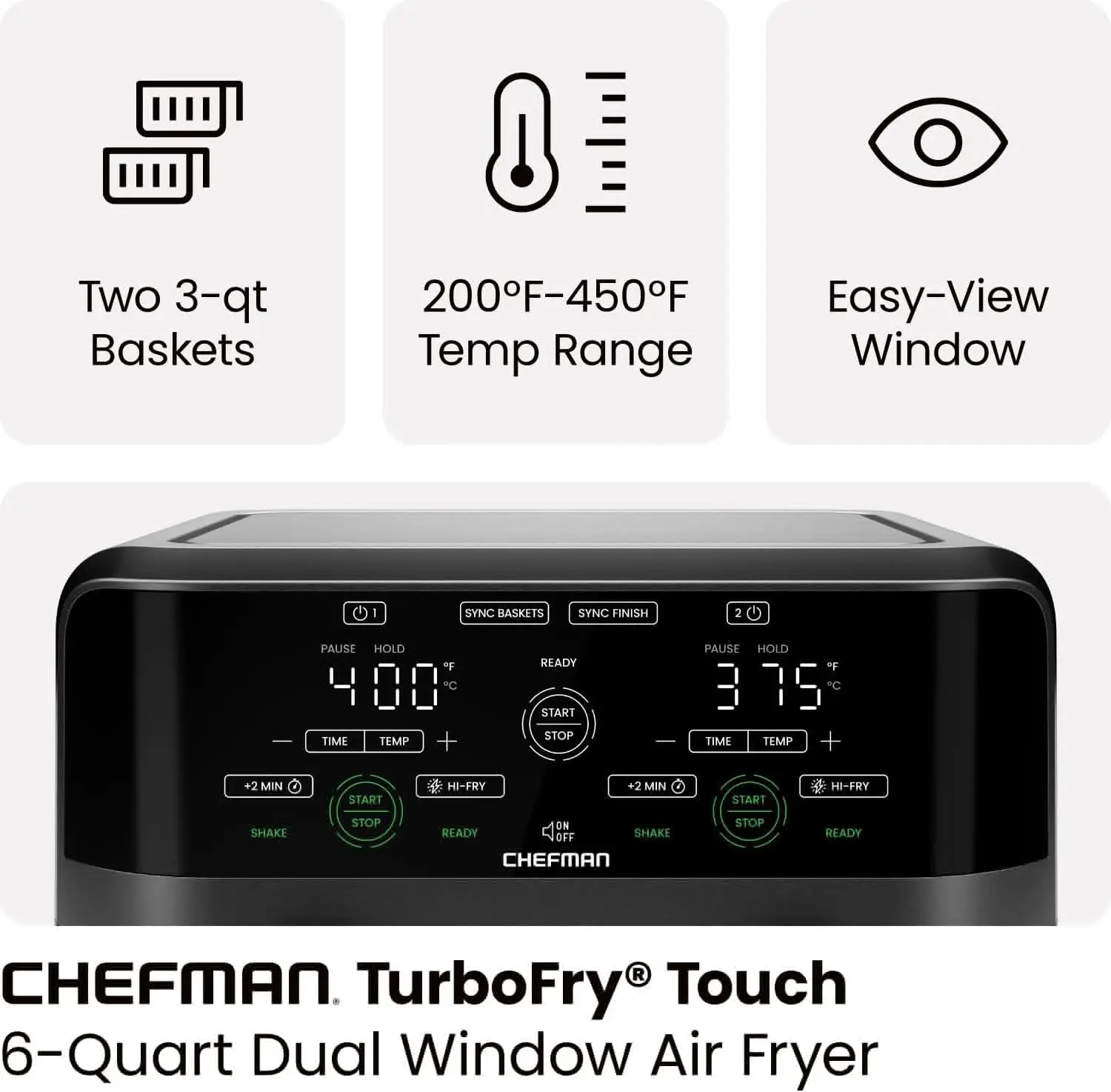 - DUAL AIR FRYER WITH 2 BASKETS: Cook food faster and more conveniently with two powerful air fryers in one with a combined 6-quart large air fryer capacity.