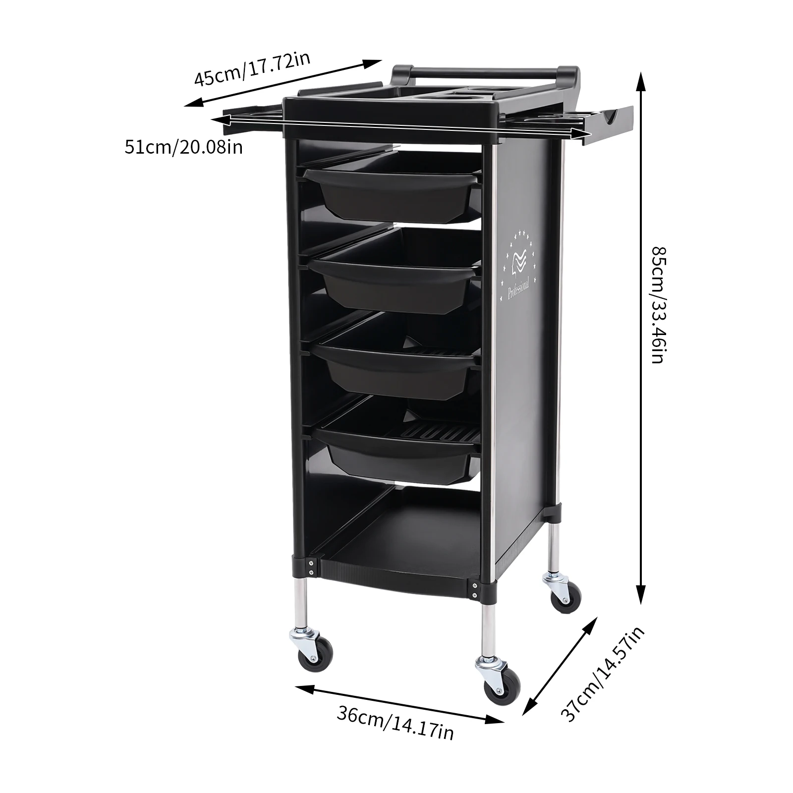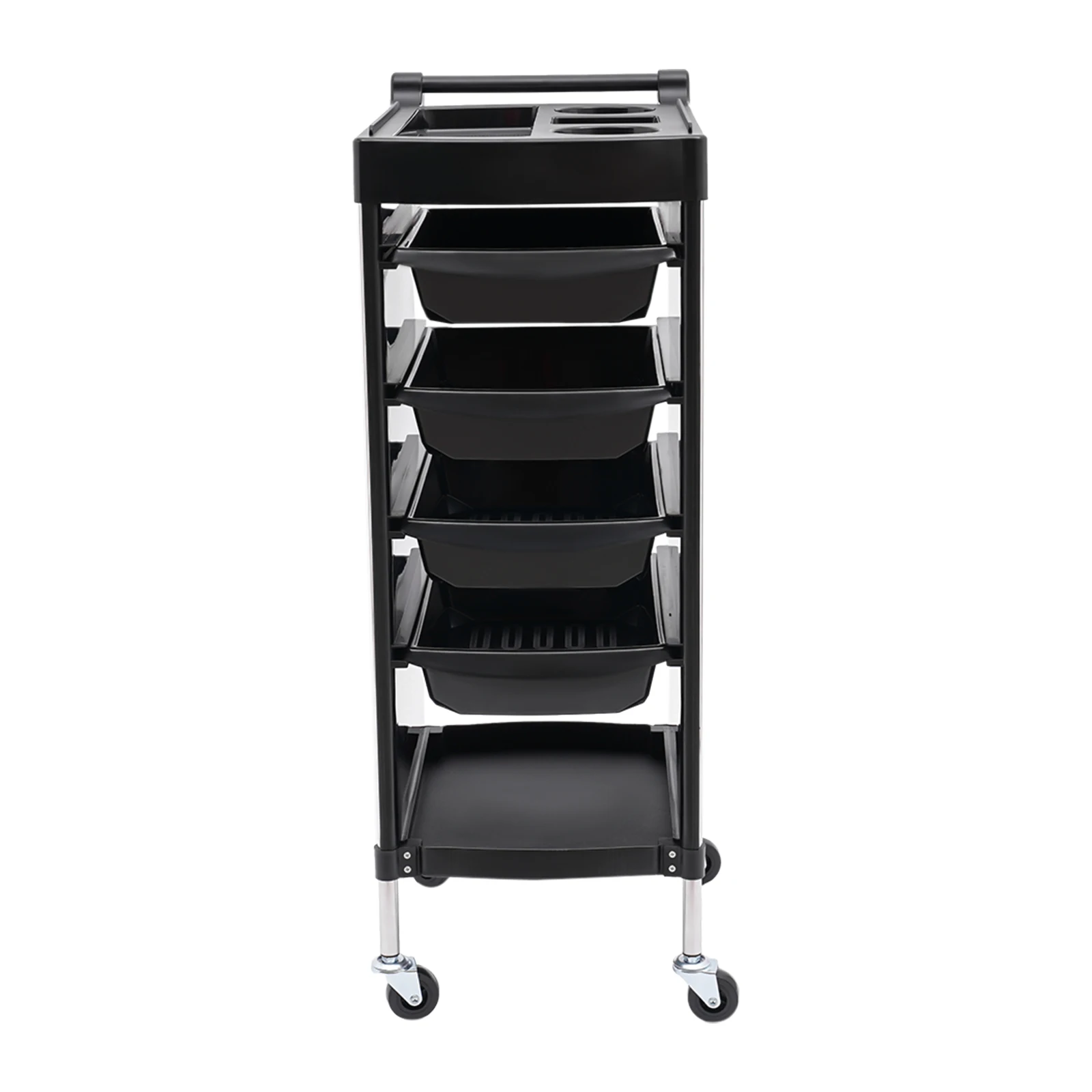Our salon trolley comes with a six-tier structure and excellent load-bearing capacity, which enables you to organize your salon supplies neatly and store enough items. The four universal wheels give it flexibility and easy movement, making it an ideal choice for hair salons, beauty salons, or even home use.