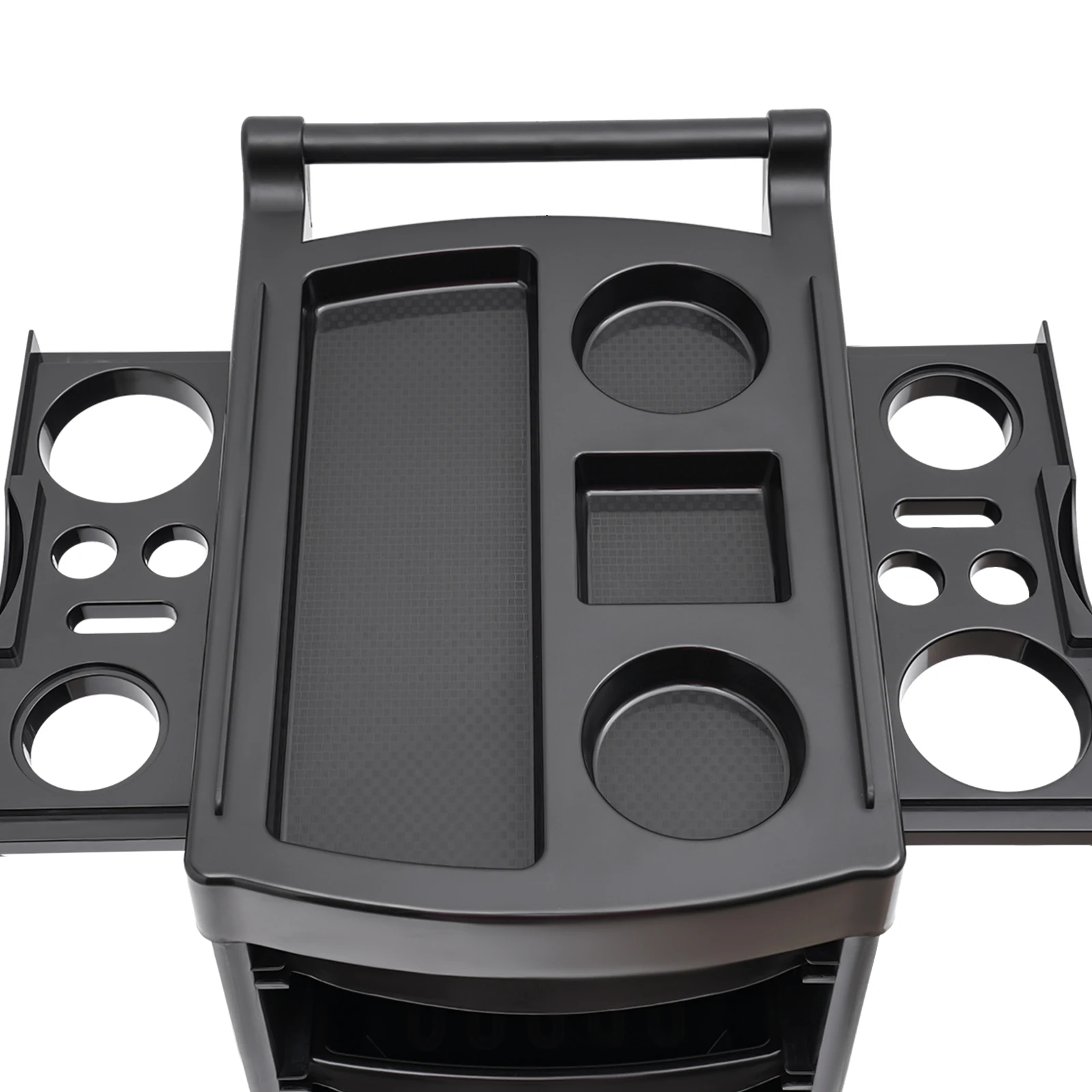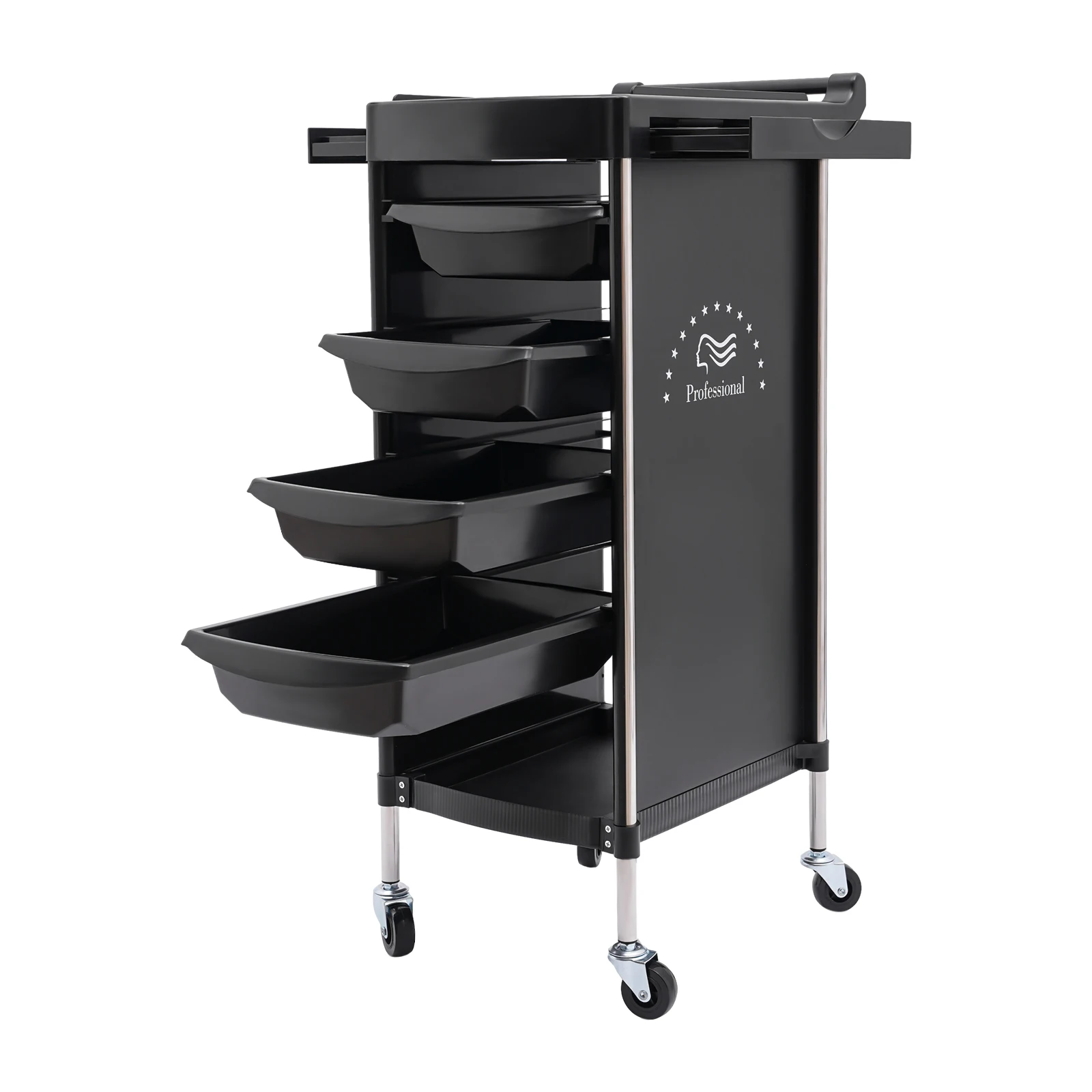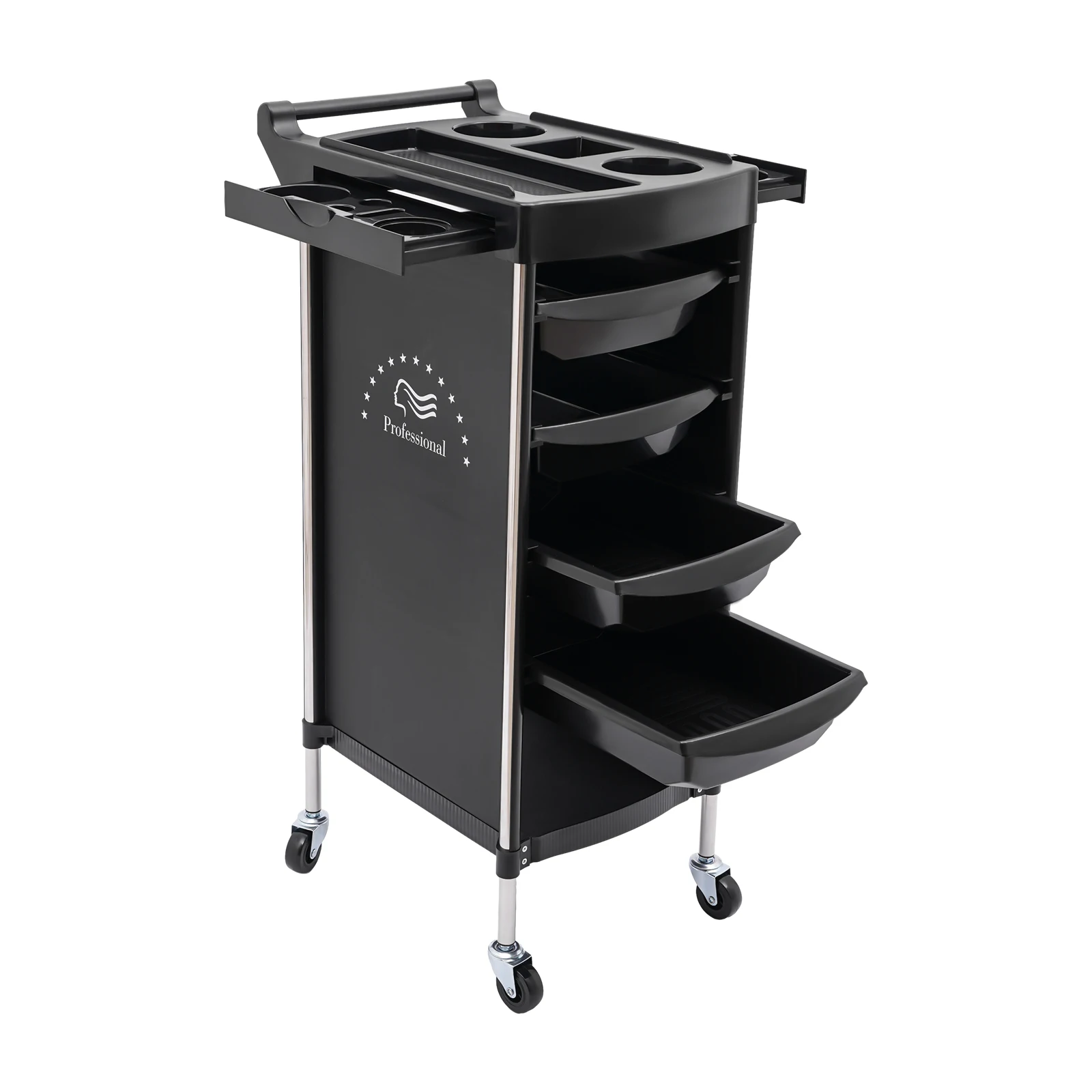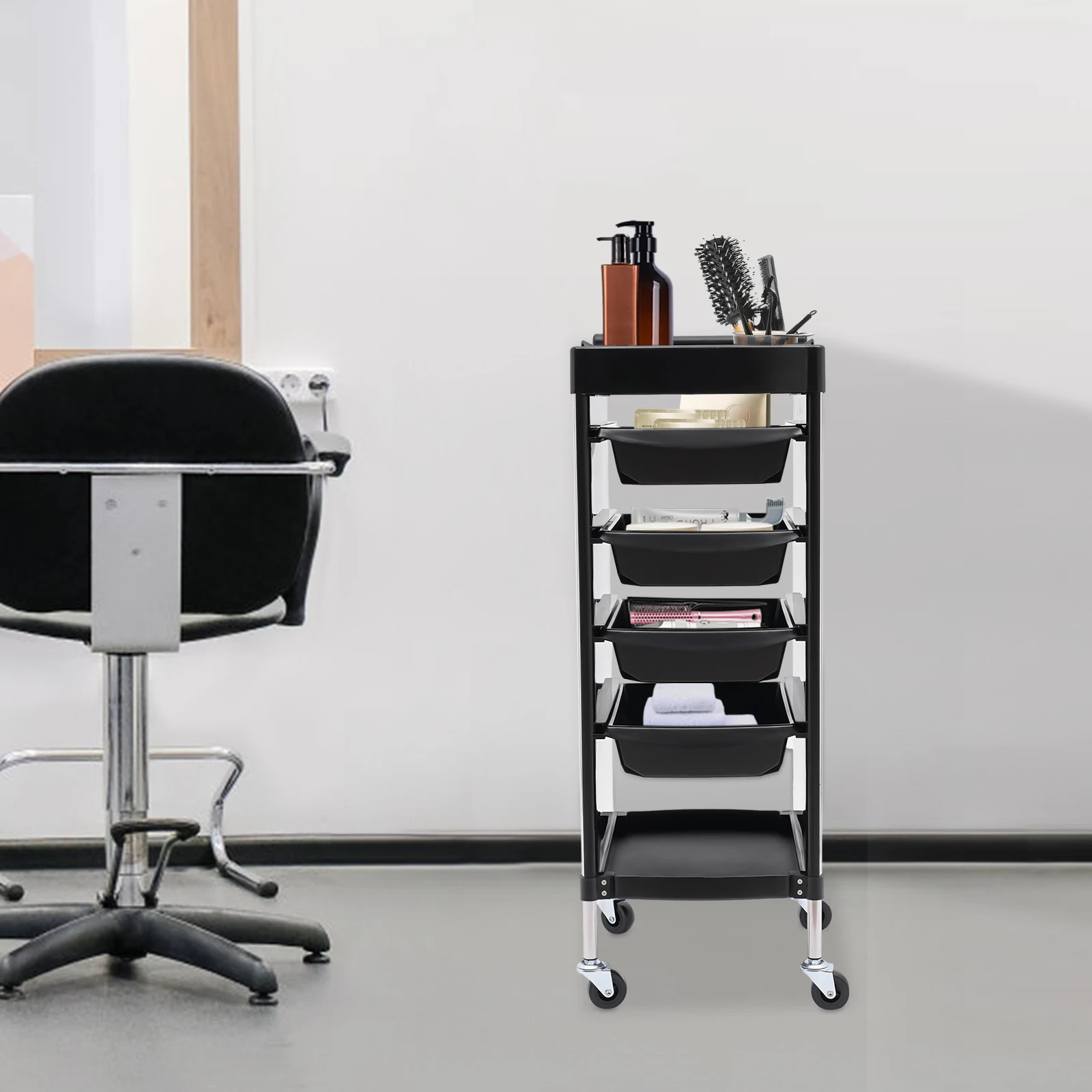 Easy to Access: The top tier with an open design has multiple compartments and the 4 middle drawer-type shelves can be pulled out smoothly in two directions, making it convenient for you to access and store various tools and salon supplies.