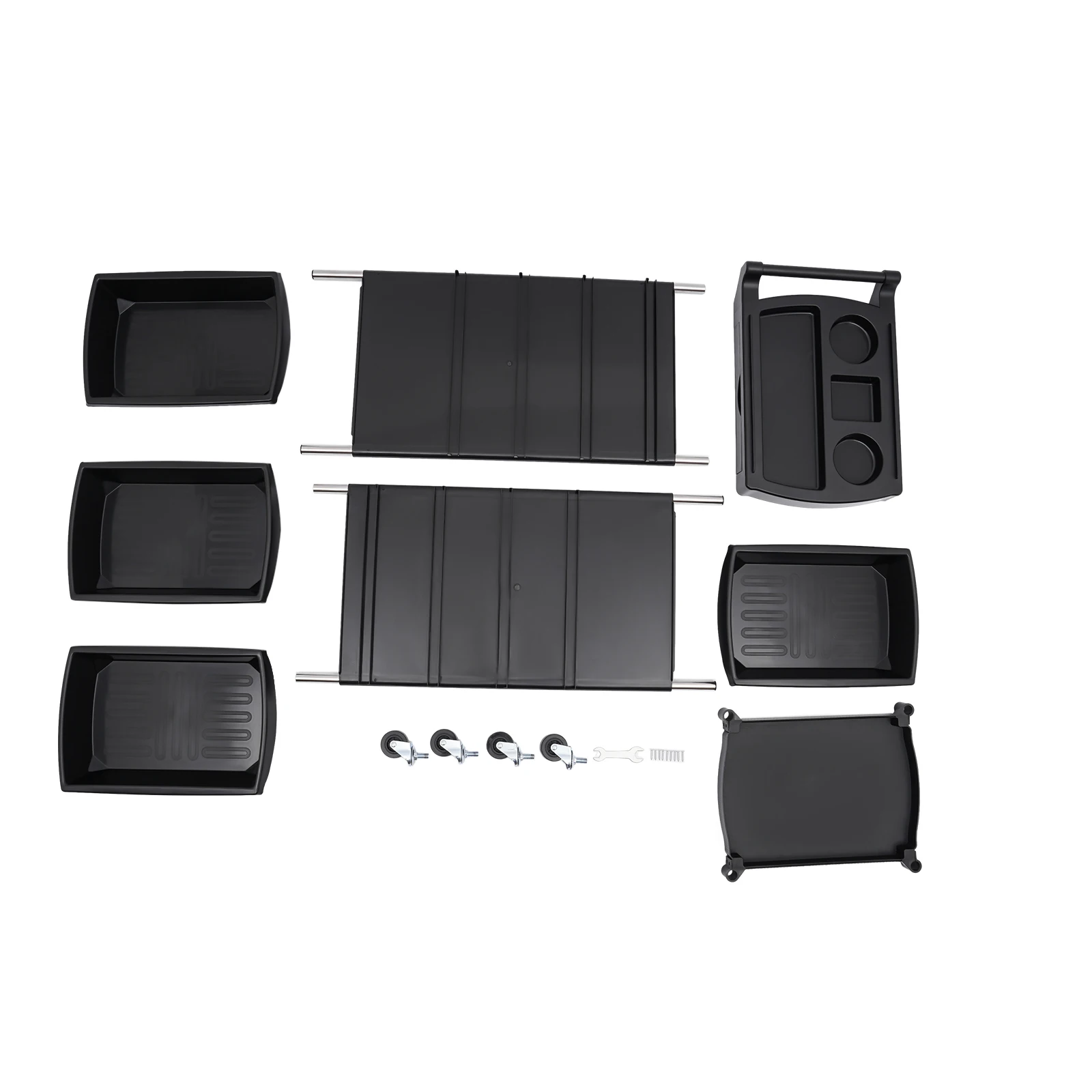 Retractable Trays: The top two side trays can be retracted into the top panel when not in use, saving space.