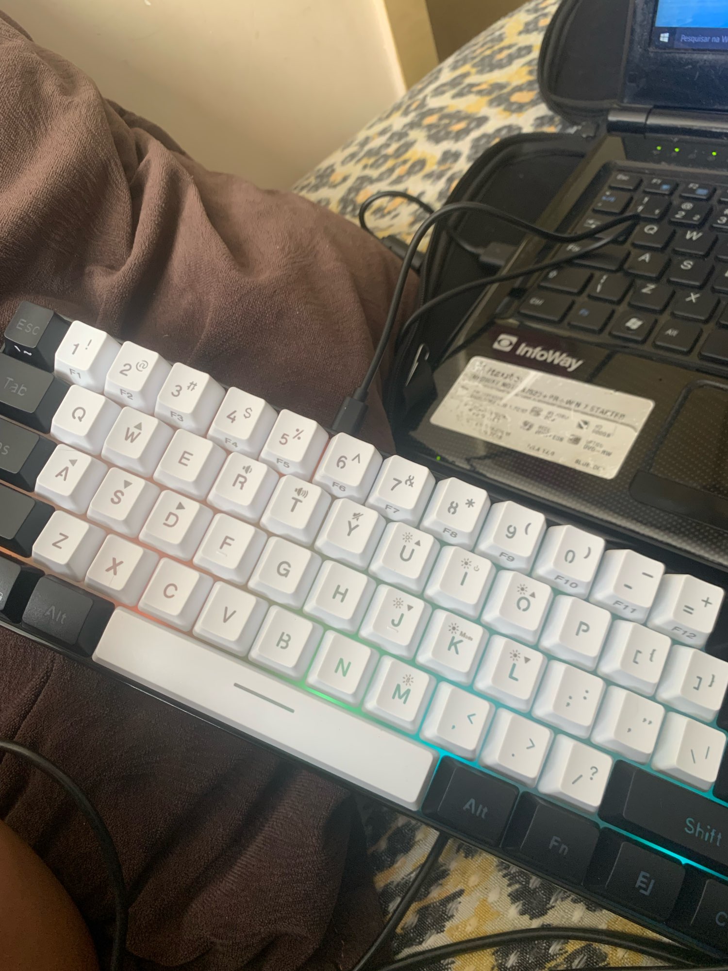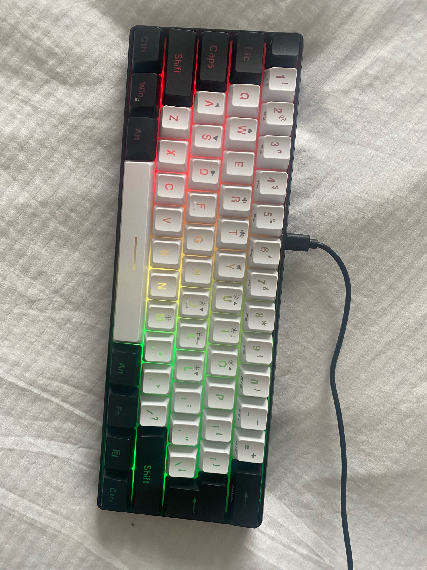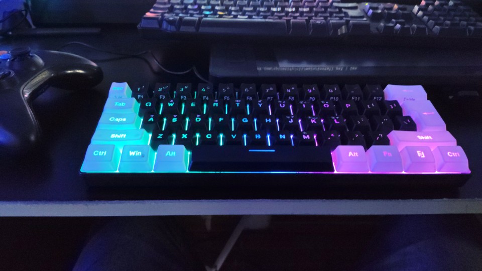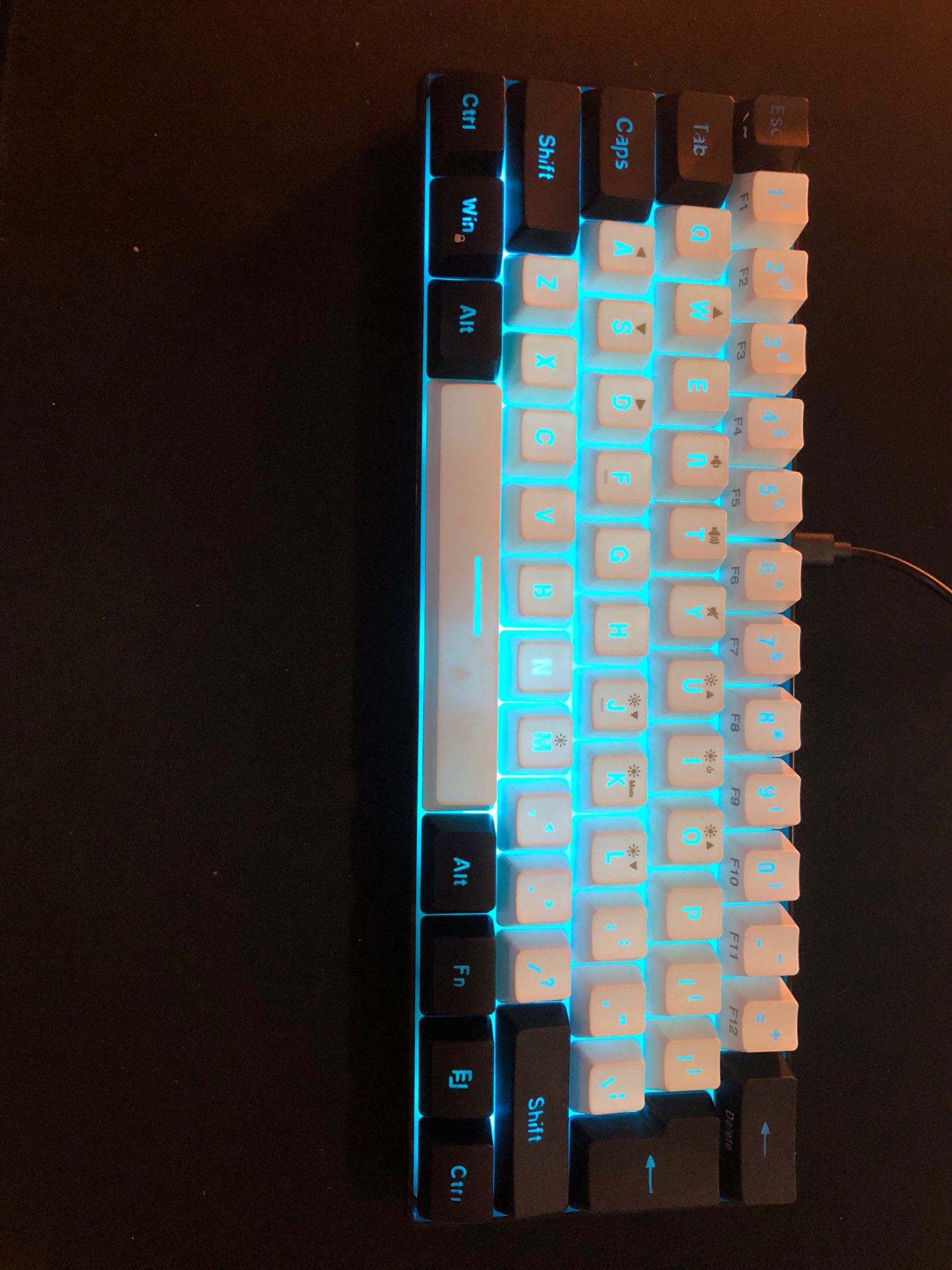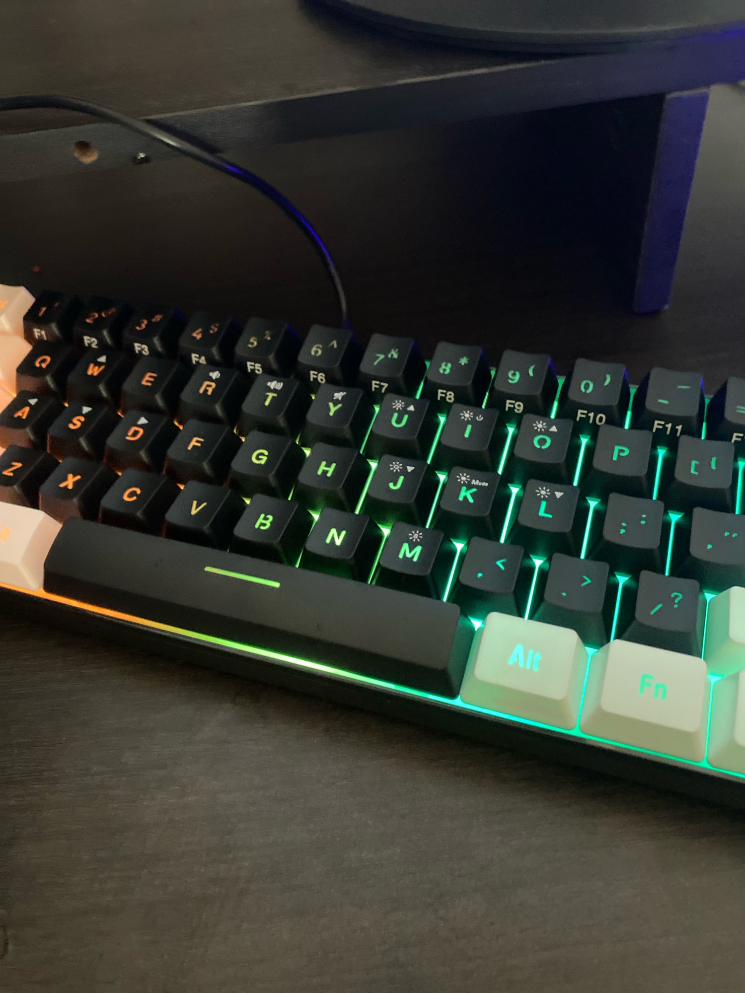 Keyboard at a good price and very enjoyable, 60% size ideal for the function I do. Not much quality plastic Material, understandable for the price. Except those details obvious by the preio, I recommend it to everyone to begin with.