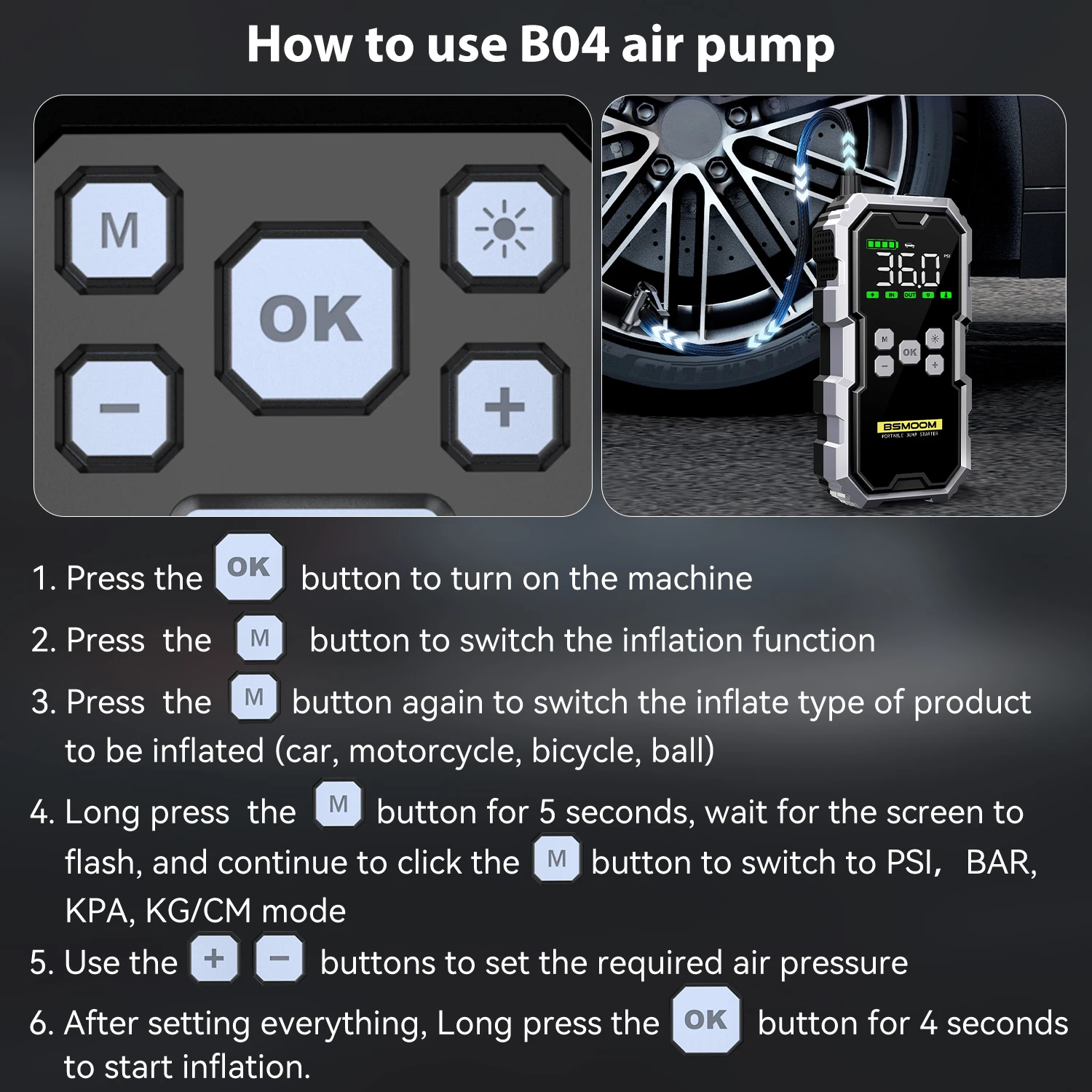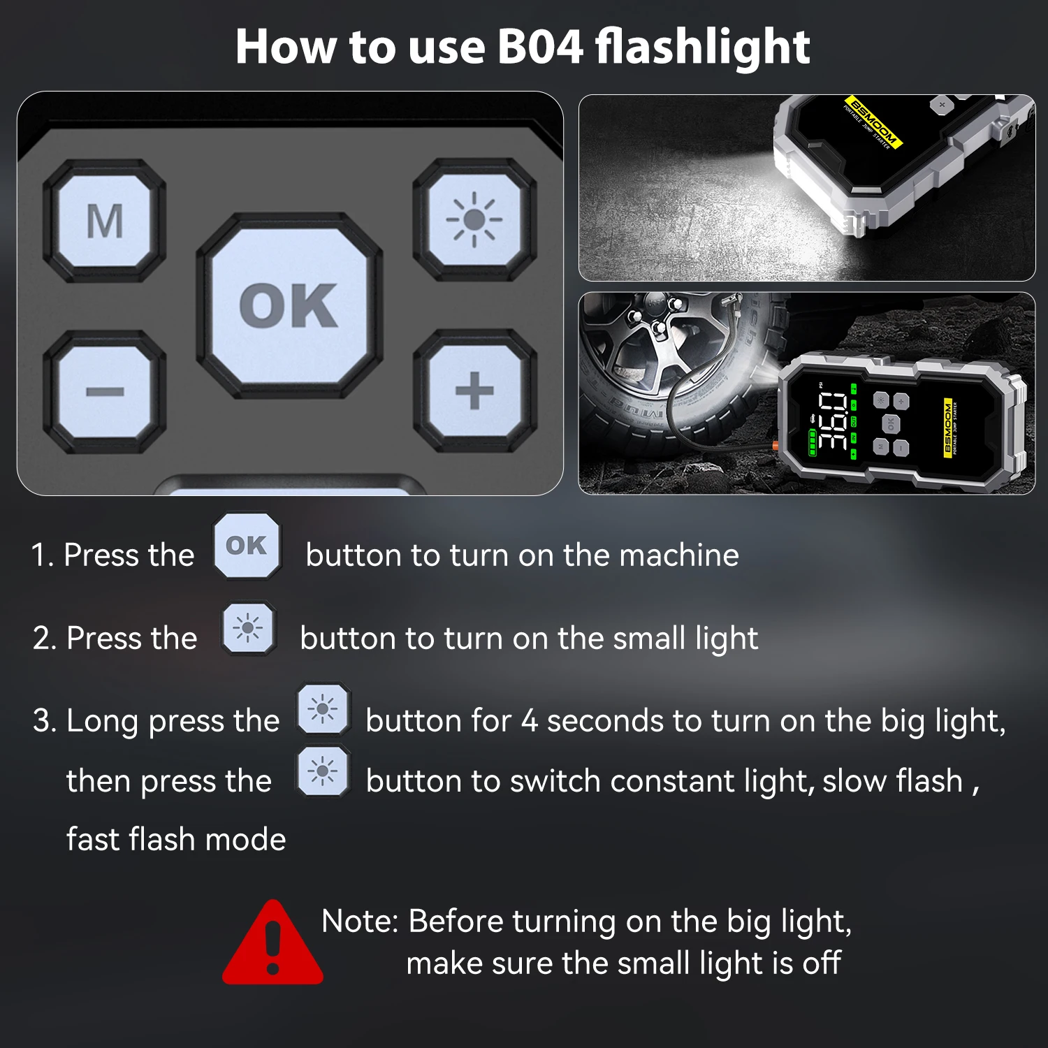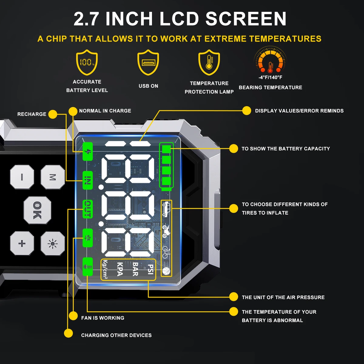 6000A Car Jump Starter Air Pump Power Bank Lighting Portable Air Compressor Cars Battery Starters Starting Auto Tyre Inflator