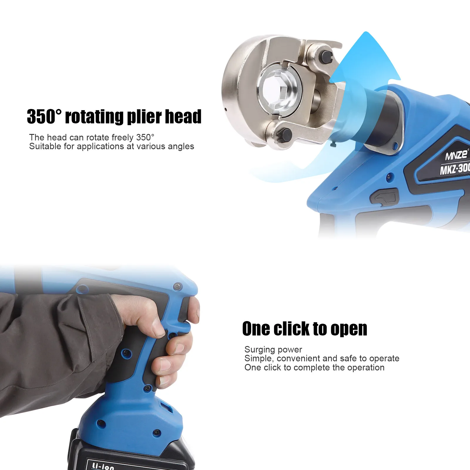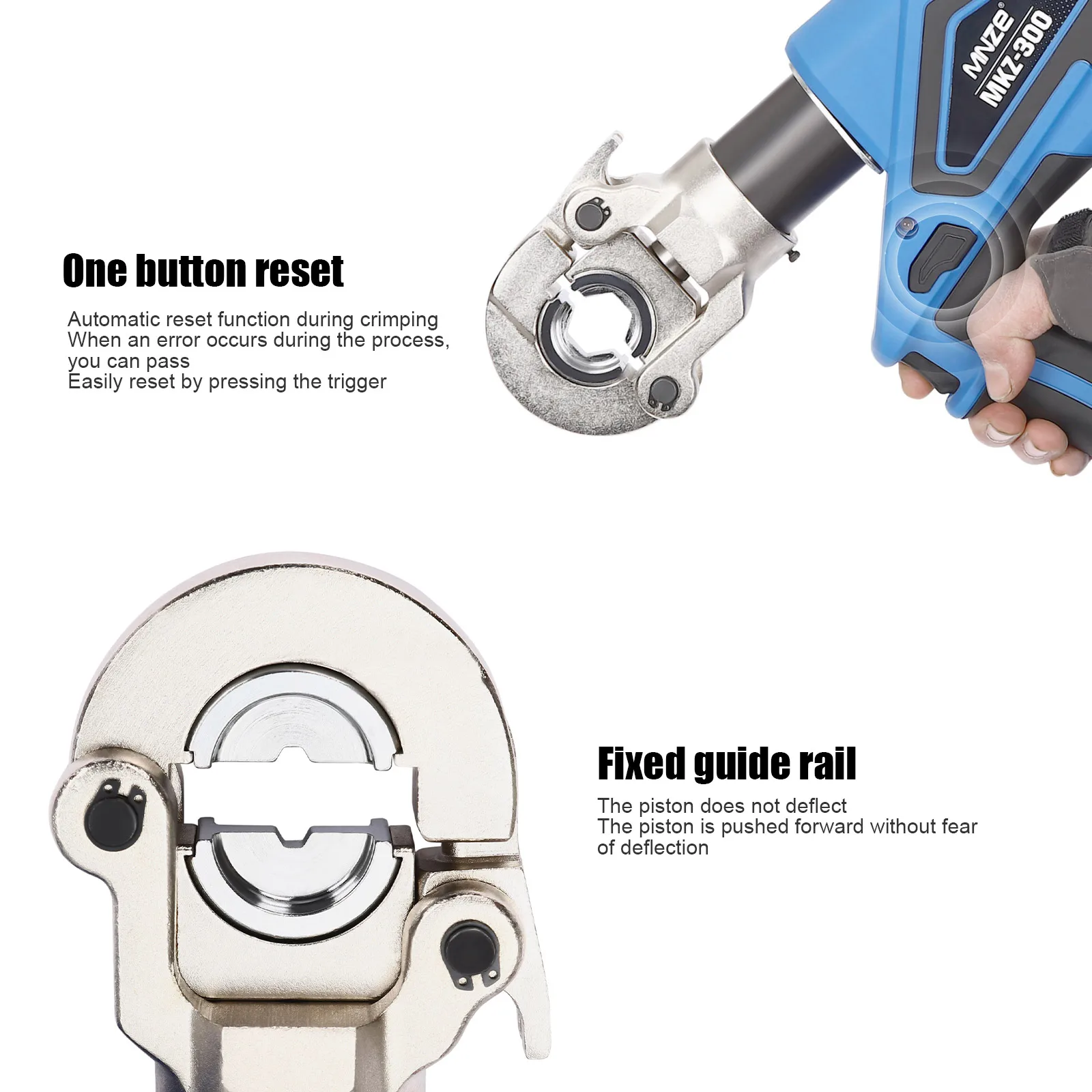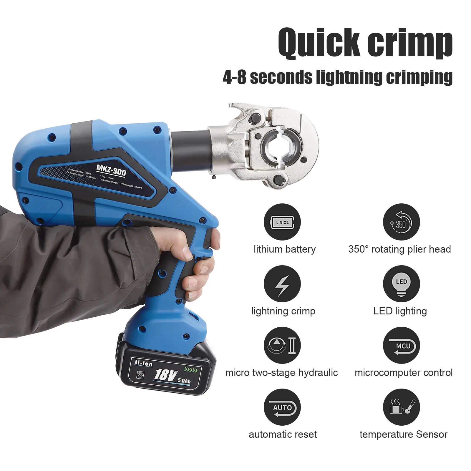 Wide Compatability: The 12 specifications of molds(10-300mm²) can meet your various demands of crimping different sizes of cables. The 350° rotatable head can be used for applications with different angles.