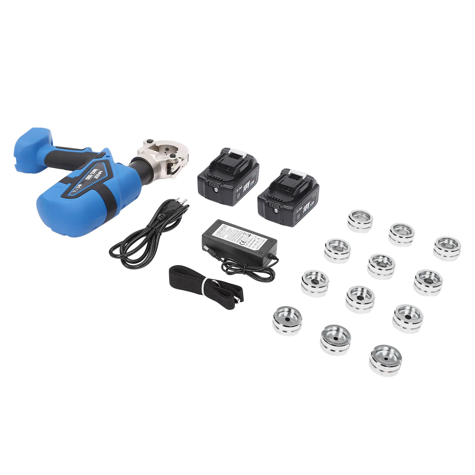 It comes with 12 molds(10-300mm²) that can crimp different sizes of copper and aluminum terminals and can be used in the electric power industry, telecommunication industry, construction industry, automobile manufacturing industry, and other fields.