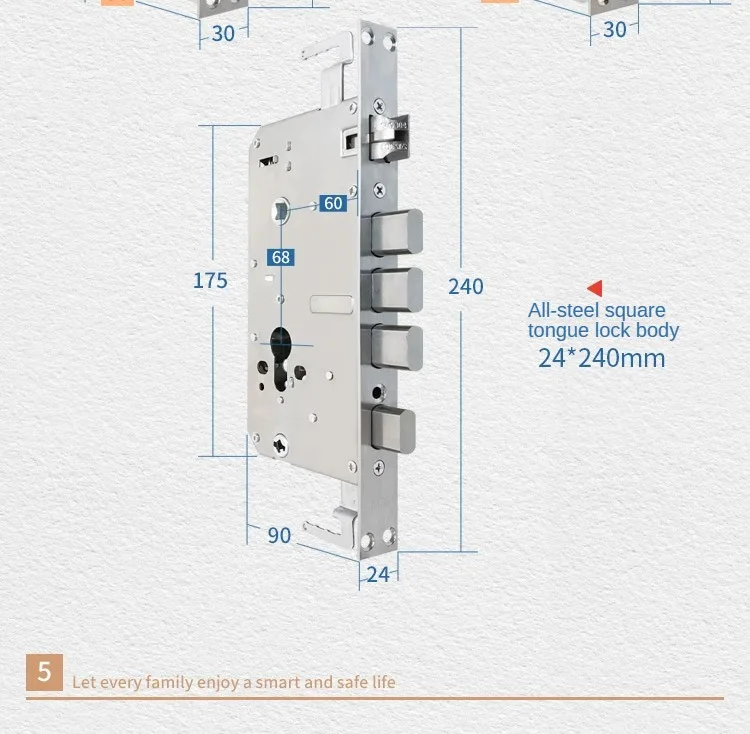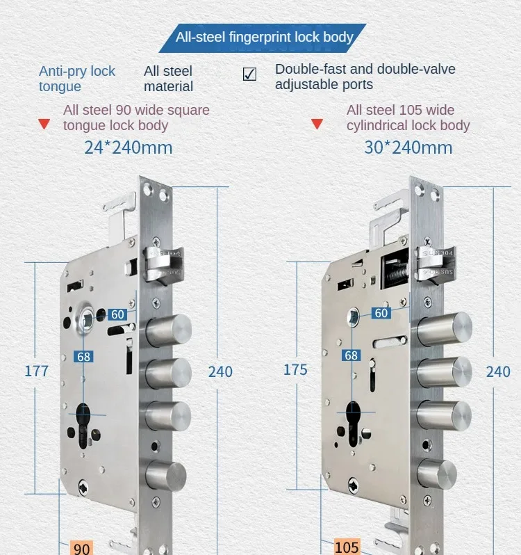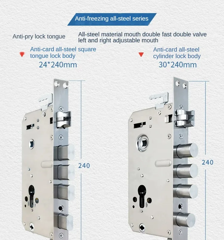 6068 series Fingerprint lock body, double active stainless steel intelligent lock, Security and anti-theft door