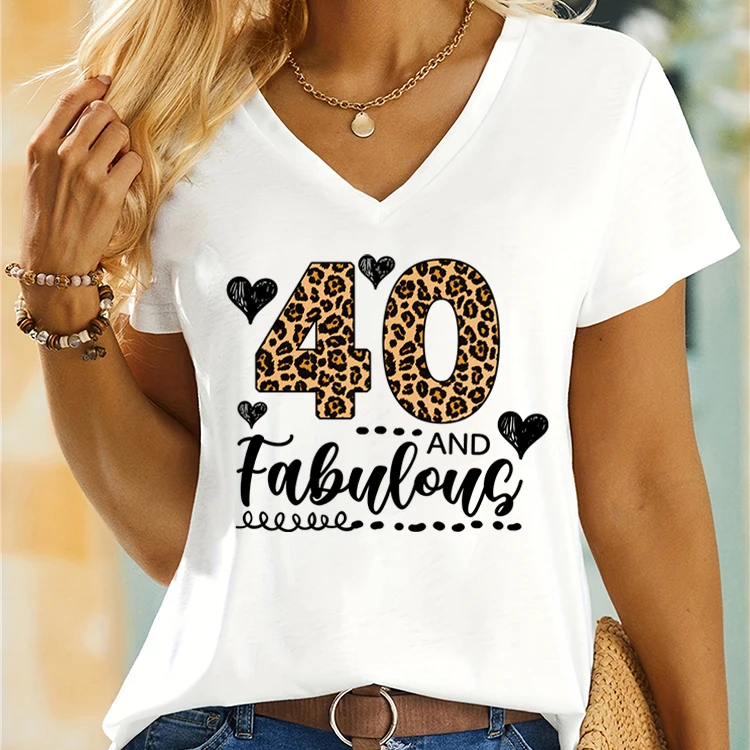 60th Birthday Shirt for Women Vintage Heart 60 and Fabulous Leopard Print Summer Short Sleeve T-shirt Fabulous Birthday T-shirts