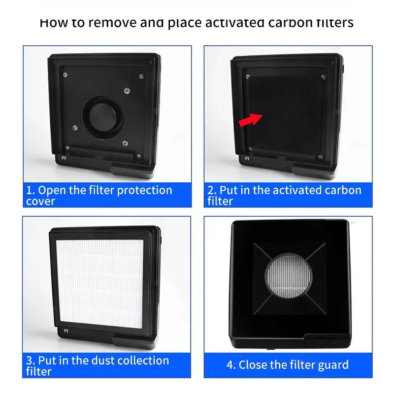 Air Filter For Smoke|Small Fume Hood|Activated Carbon Filter Sponge:Equipped with an activated carbon sponge, the LUXIANZI Fume Extractor effectively absorbs toxic fumes from soldering irons.
