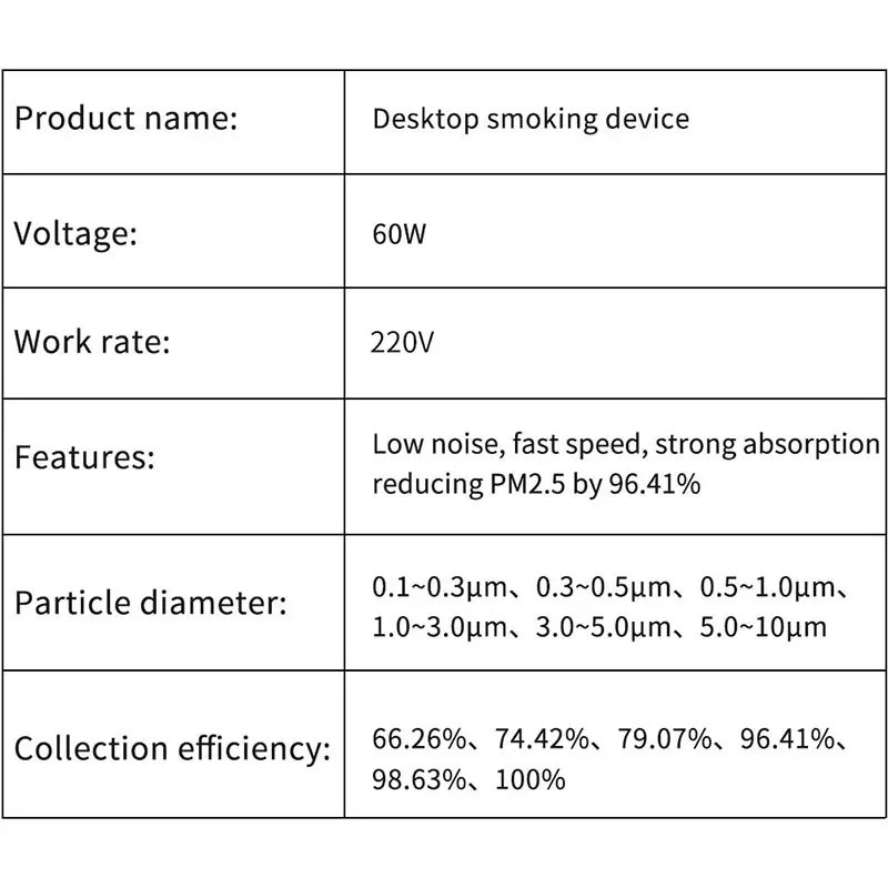 • Strong smoking, HEPA Dense mesh filter , anti-static.